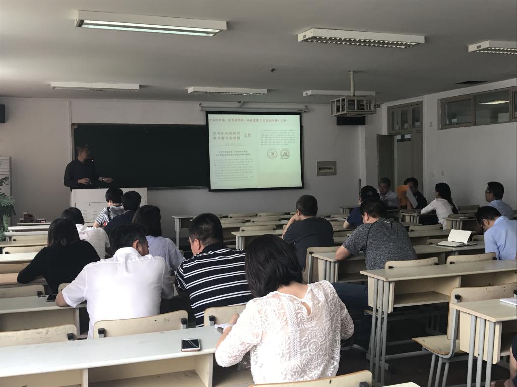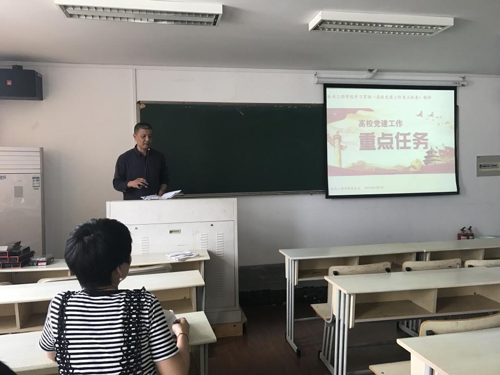 2018年6月6日下午,十大电竞博彩排名 党总支在6A503组织召开党员学习会——传达《高校党建工作重点任务》通知精神。电子竞技博彩 全体教工党员参加了学习会,党总支书记周荣主持学习。