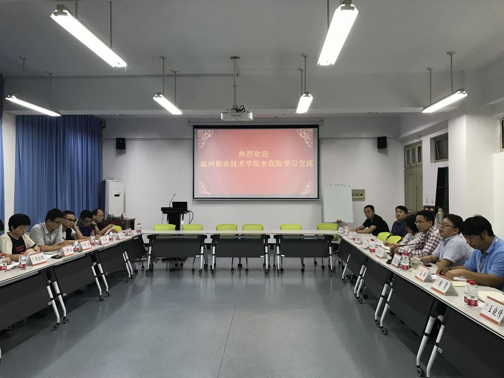 2018年6月6日下午,温州职业技术电子竞技博彩 机械工程系一行20余位教师在副主任宋荣、教研室主任郑红的带领下,来访电子竞技博彩 进行专业建设与课程教学的研讨交流。电子竞技博彩 院长周宏明、副院长姜锐、院长助理李勇、教学科、实验中心、机械制造系负责人及专业骨干教师参与了此次交流会。