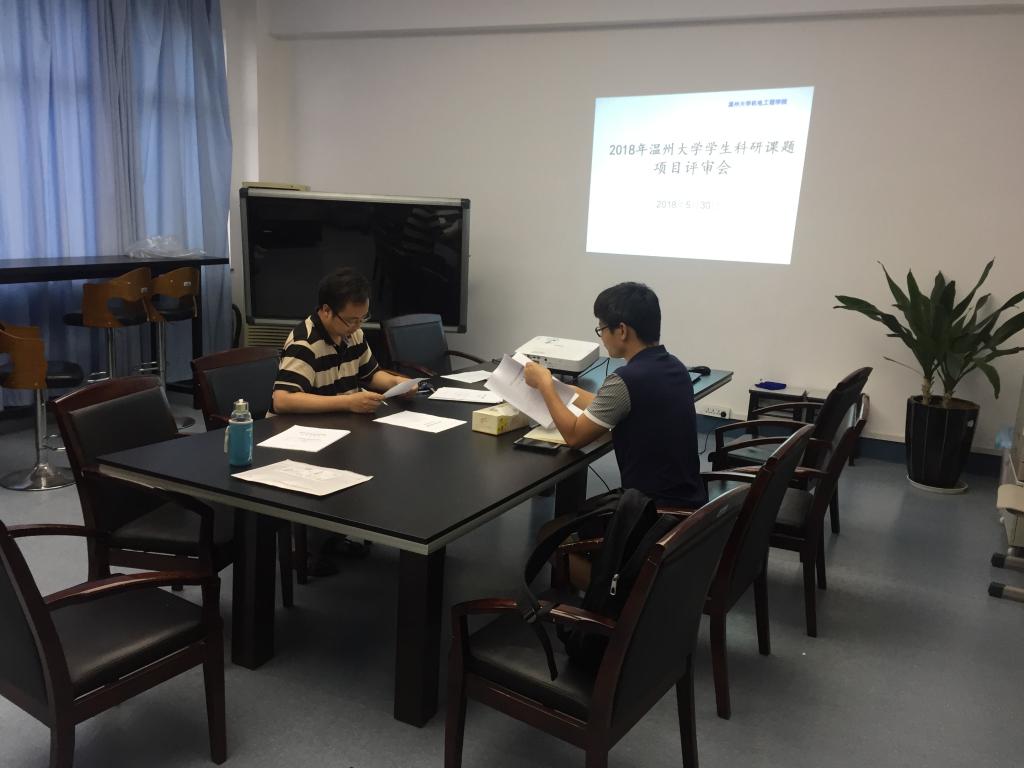 5月30日下午,十大电竞博彩排名 各系代表周晨老师、周余庆老师、周建锡老师在院B301会议室召开院级学生科研课题立项评审会,杨奇老师主持会议。