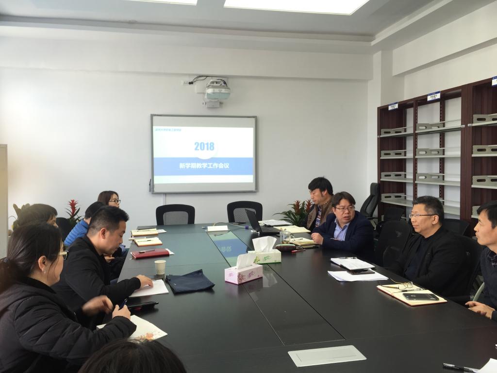 为更好的开展电子竞技博彩 工作,提高电子竞技博彩 教育教学质量,2018年3月21日下午,电子竞技博彩 在会议室召开2017-2018学年第二学期教学工作专题会议。电子竞技博彩 院长周宏明,党总支书记周荣,副院长姜锐以及各系主任、各实验室主任、教学科全体人员、学生科相关老师参加了会议,会议由副院长姜锐主持。