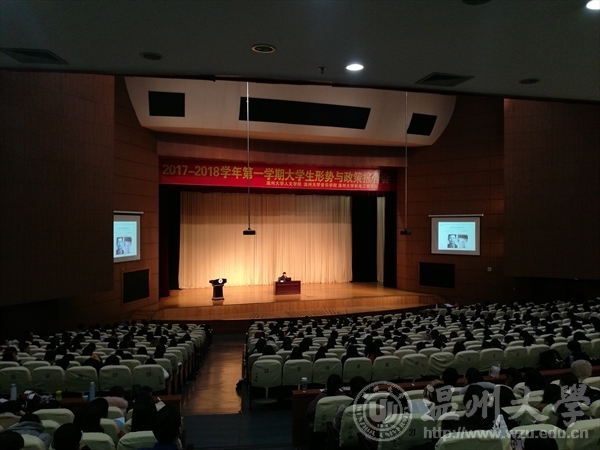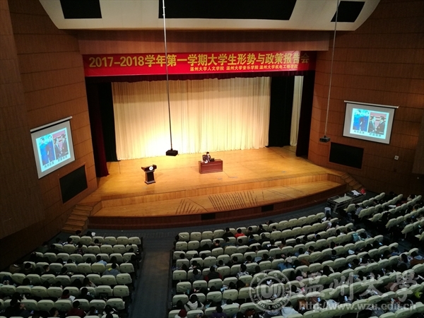 2017年12月14日17:30,电子竞技博彩 联合人文电子竞技博彩 和音乐电子竞技博彩 举办了本学期的形势政策报告会。本次报告会分为两场,分别为我校张小燕教授主讲的《“和合”文化视野下的温州精神》和王柏民教授主讲的《马克思主义宗教观解读》。