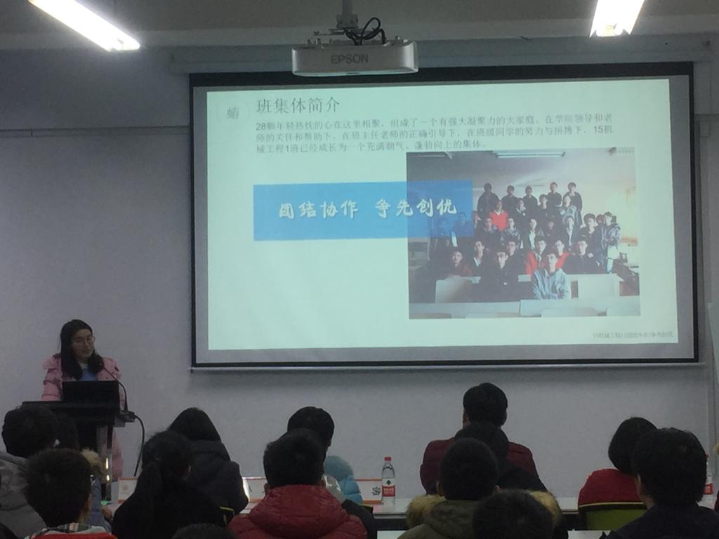 接下来主持人按照抽签顺序依次报幕,各班级代表依次上台进行班级介绍。评比过程中各班级的展示生动活泼、高潮迭起。各班发言人向在场的老师和同学们展示了各班风采,包括班级介绍、学风建设、团建活动、考级考证、科研竞赛和未来展望等几个方面,他们的精彩演讲搏得了在场老师和同学们的热烈掌声。