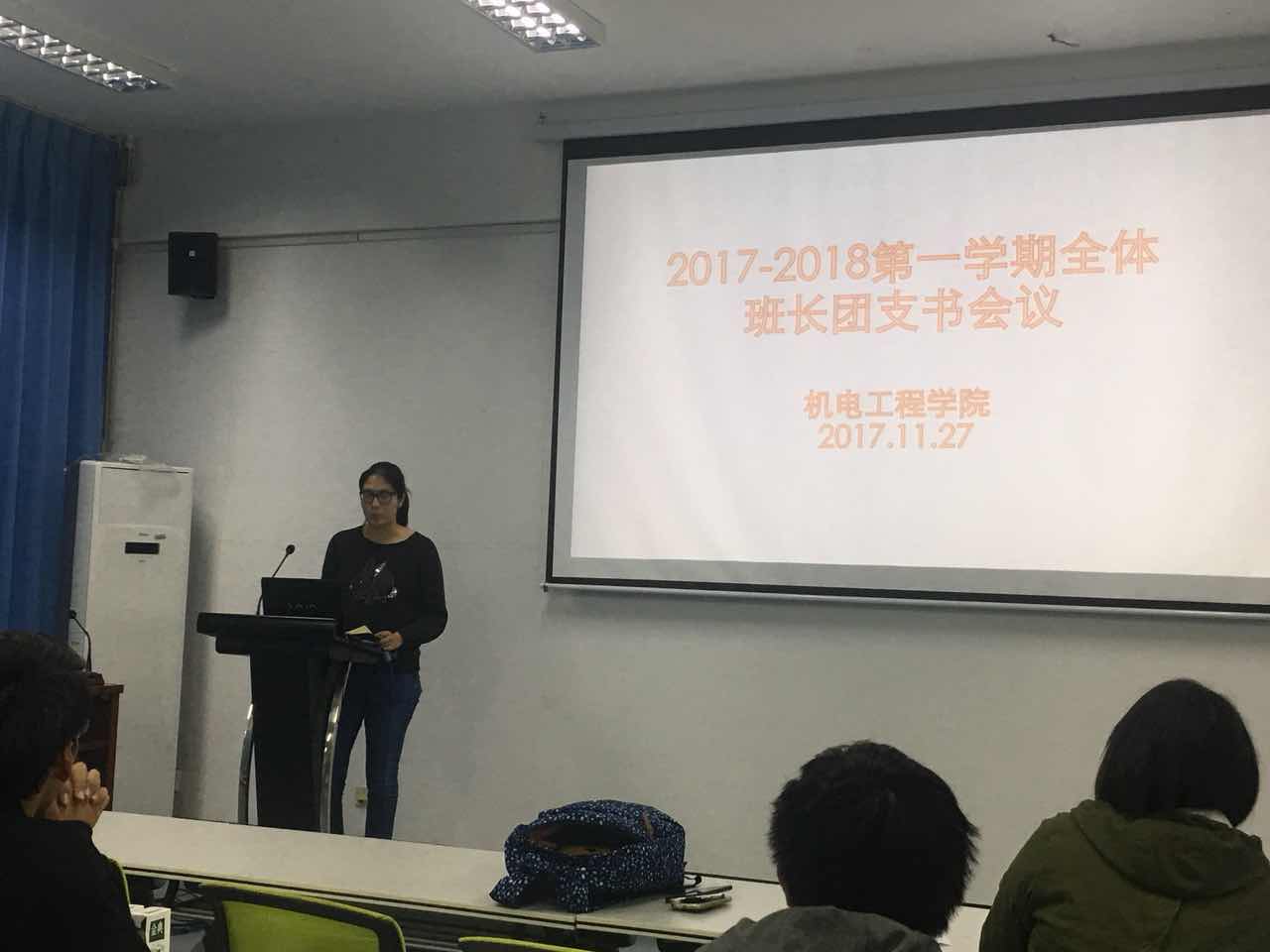 11月27日晚,机电电子竞技博彩 在B201教室举行了全体班长团支书会议。出席此次会议的有党支部副书记李密老师,电子竞技博彩 学生科孙双老师,郑妤老师,徐沁怡老师,以及全体班长团支书。