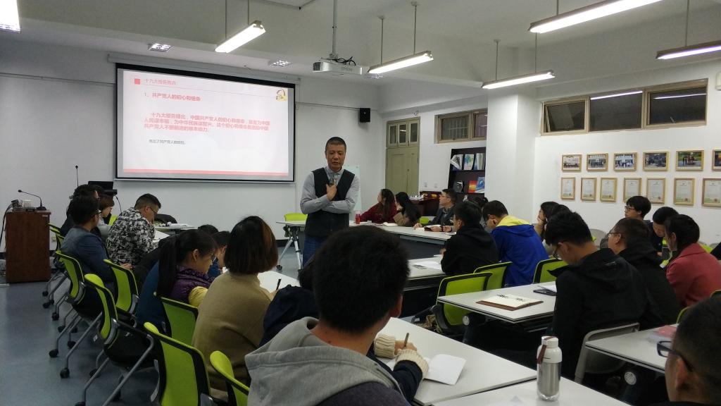 为进一步领悟习近平新时代中国特色社会主义思想,深入学习贯彻党的十九大精神,11月25日下午,电子竞技博彩 研究生党支部邀请到电子竞技博彩 党总支书记周荣作题为《新思想、新目标、新征程——深入学习十九大精神》的专题讲座。电子竞技博彩 在校研究生党员、入党积极分子参加讲座。