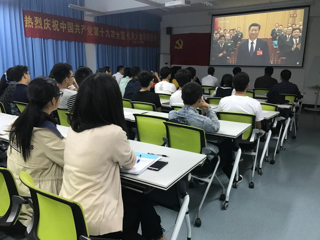 2017年10月18日上午9时,中国共产党第十九次全国代表大会在北京人民大会堂隆重召开。电子竞技博彩 师生热切关注十九大盛况,电子竞技博彩 领导班子、教师及研究生党员、入党积极分子在机电楼6B201会议室集体收看十九大开幕式直播,认真听取习近平总书记的报告。