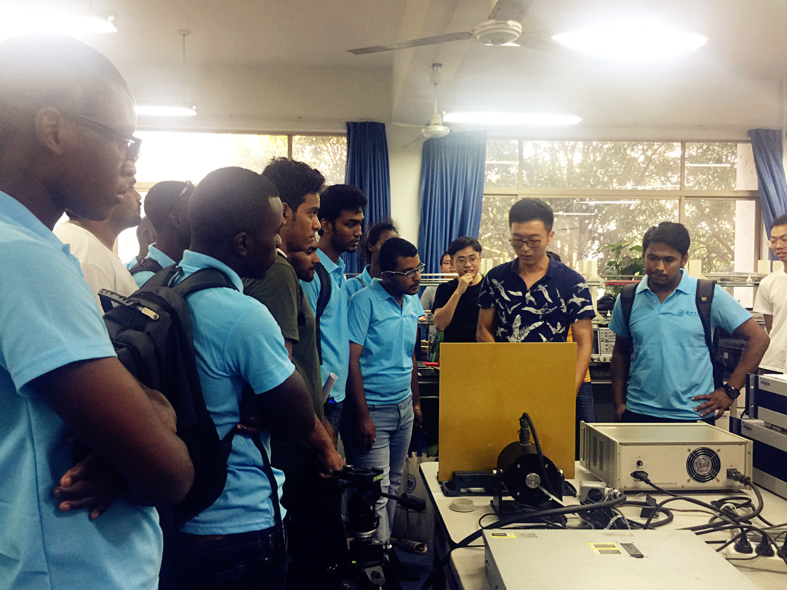 新生见面会后,电子竞技博彩 实验教学中心主任林礼区带领留学生参观了电子竞技博彩 实验室和学生科技创新成果展厅