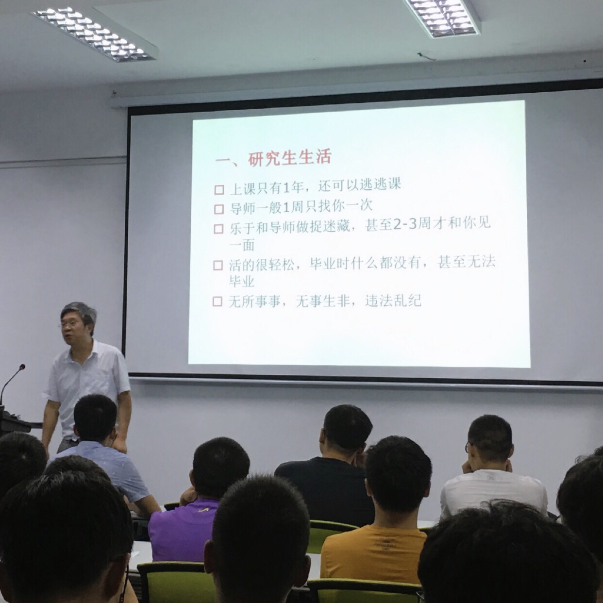 首先,冯爱新副院长从研究生生活着手为同学们细心讲解研究生教育的各项规章制度。主要涉及研究生培养环节的各个流程以及接一下的个人培养方案的制定;专业实践、学位论文的开题及撰写。