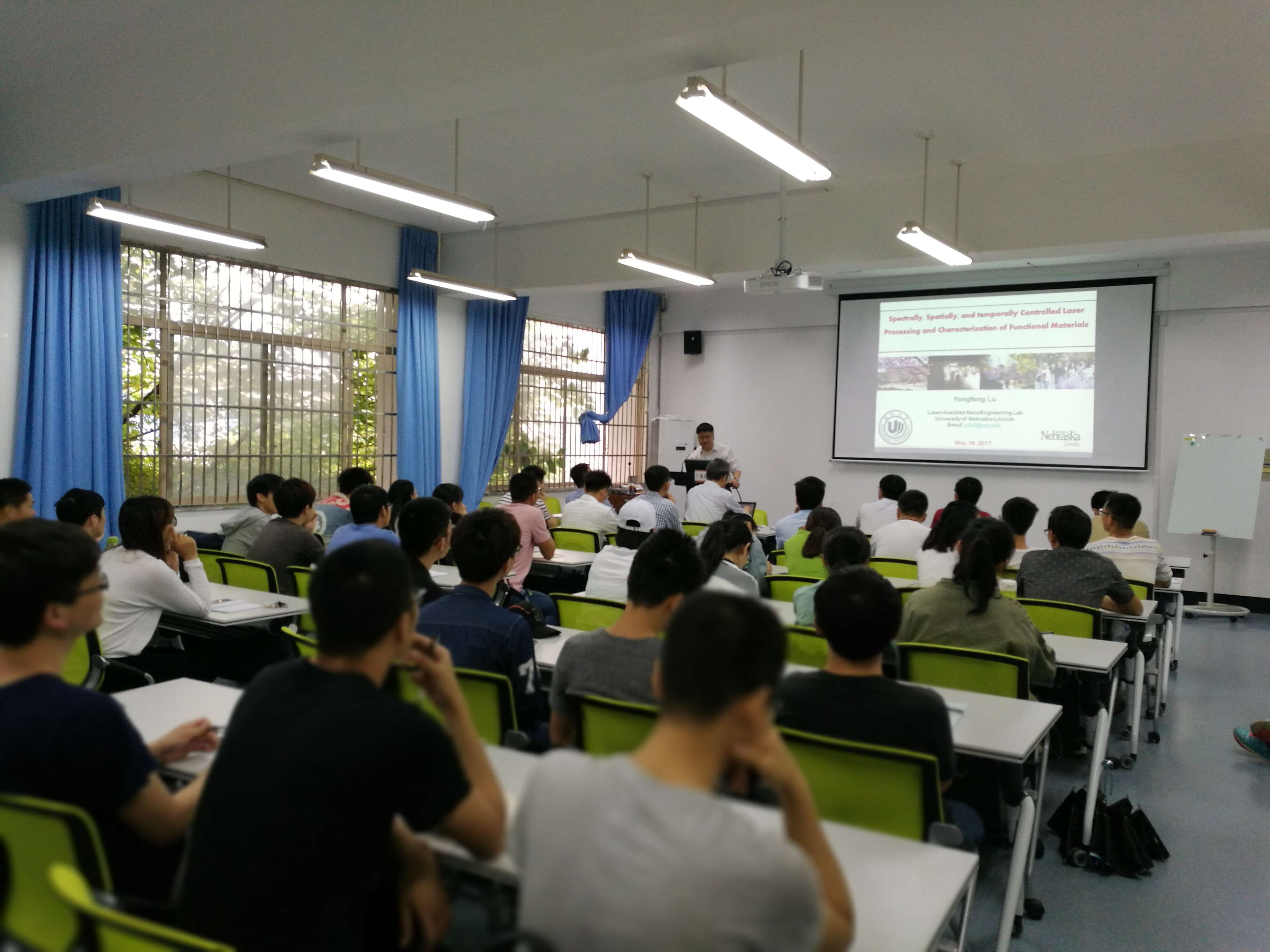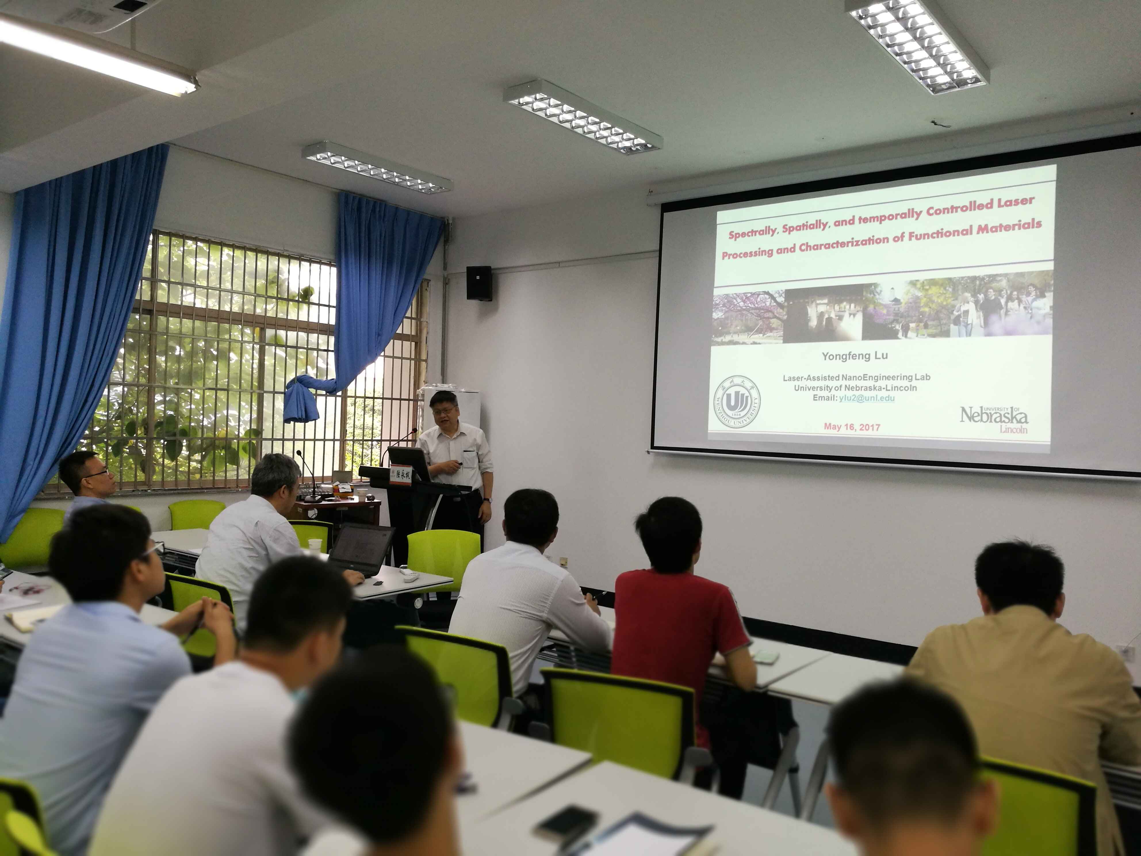 2017年5月16日上午,激光精密微细加工技术学术研讨会在机电楼B201室隆重召开。出席本次讲座的嘉宾有内布拉斯加大学林肯分校教授陆永枫老师、十大电竞博彩排名 院长冯爱新老师以及相关专业的老师。机电电子竞技博彩 全体研究生共同参加了本次学术讲座。