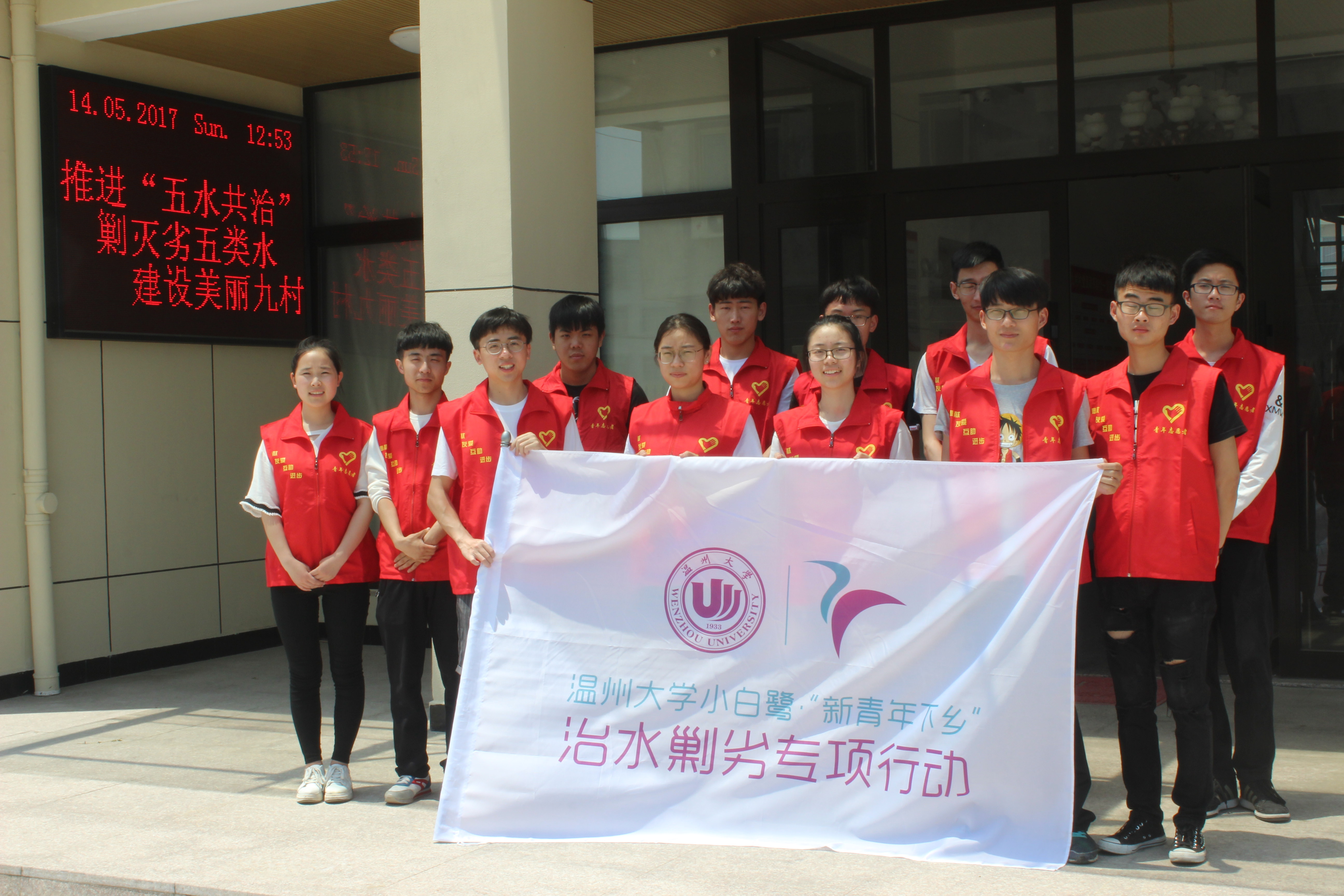 2017年5月14日,电子竞技博彩-十大电竞博彩排名 团委学生会的成员们在温州市洞头区九村村举行了剿灭劣V类水的推广活动。