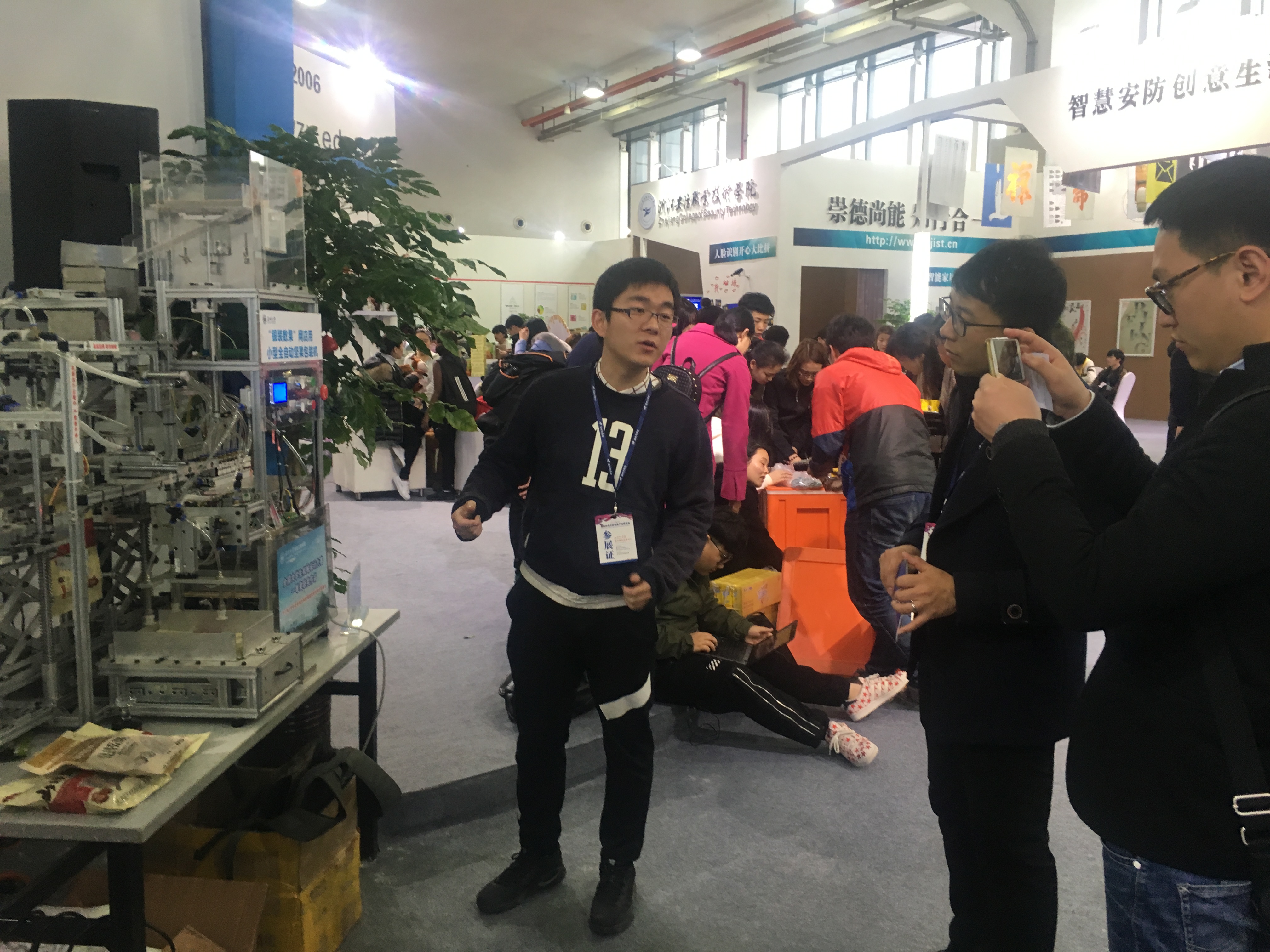 本次文博会以“创意点亮生活”为主题,共设共设六大展区,总面积4万平方米左右,另外,在瓯海时尚智造小镇设立分会场。此次电子竞技博彩 参展的三项学生机械作品为别为自动包梨机,自动坚果包装机以及硬币自动分离包装机并向大众展示了在工业显微镜下的激光切割的别样魅力。此次展出的学生作品,皆由学生设计制作,他们的想象力,创造了吸引了观展的民众的注意。一些机械“爱好者”们听完同学们对于机械作品的介绍之后,与同学们展开了热烈的讨论,进行了思想的碰撞,为机器的提升提出了宝贵的意见。而一些小朋友们则被全自动运行的机器给吸引了,一颗颗小核桃放进机器里自己出来就成了一袋袋完整的包装,大家都目不转睛的看着机器一步步的运作,不禁发出哇的赞叹。家长们乘机就给小朋友们上了一课,告诉他们现代科技的发达,要他们也要好好学习,将来能像十大电竞博彩排名 的同学们一样,自己设计机器来让世界更加美好。