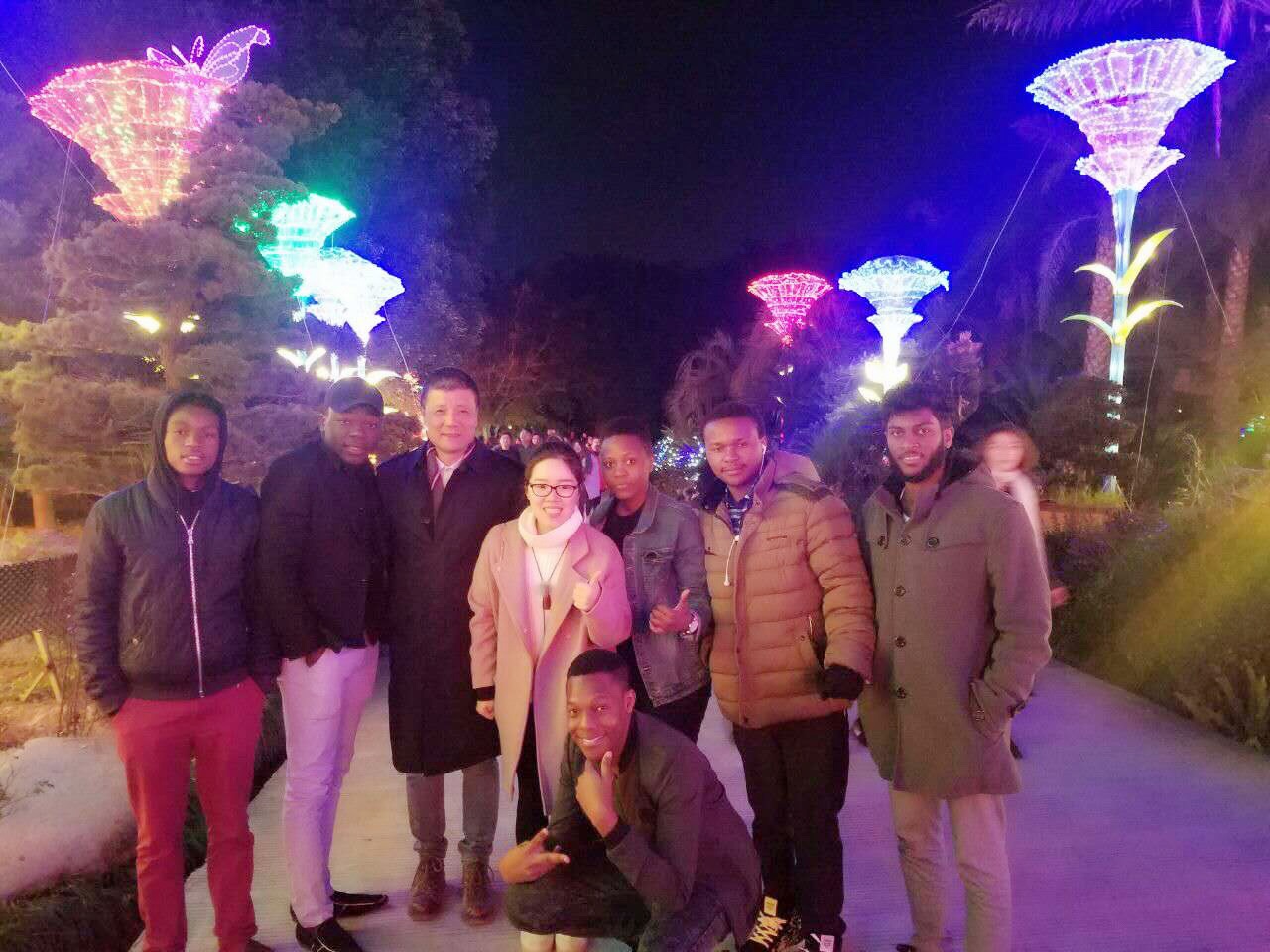 “元宵争看采莲船,宝马香车拾坠钿”。元宵是一个重要的中国传统节日,这个月圆之日,也是家庭团圆的重要日子。为了让寒假留校的留学生更好地感受来自电子竞技博彩 的人文关怀,并体验中国元宵节文化,近日,十大电竞博彩排名 周荣书记与外事秘书李舒琦带领电子竞技博彩 留学生前往丽岙观赏自贡灯展。