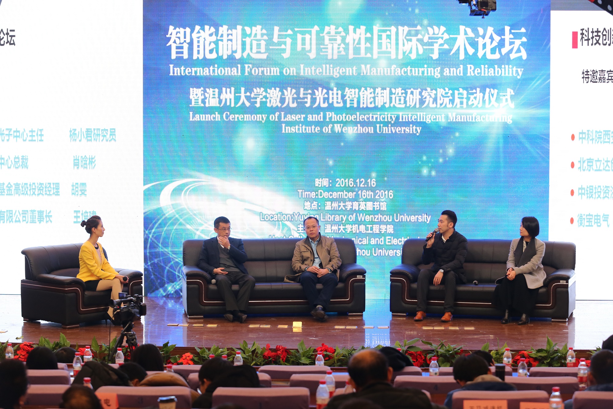 2016年12月16日,智能制造与可靠性国际学术论坛暨温州大学激光与光电智能制造研究院启动仪式于温州大学育英图书馆报告厅举行。温州大学校长李校堃,副校长薛伟、钱强,温州市浙南科技城管委会主任赵典霖,温州市发改委副主任周建清,温州市经信委副主任徐竹良,温州市科技局副局长匡连庭,国内外的专家学者以及金融界、企业界的代表出席了本次会议。会议由温州大学副校长钱强主持。