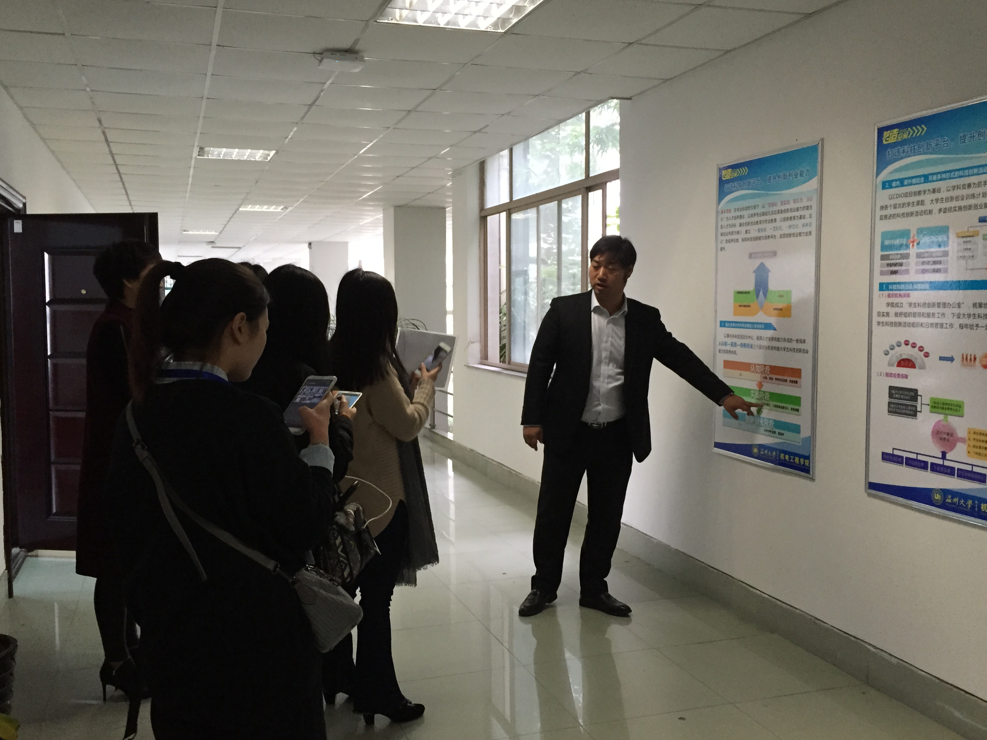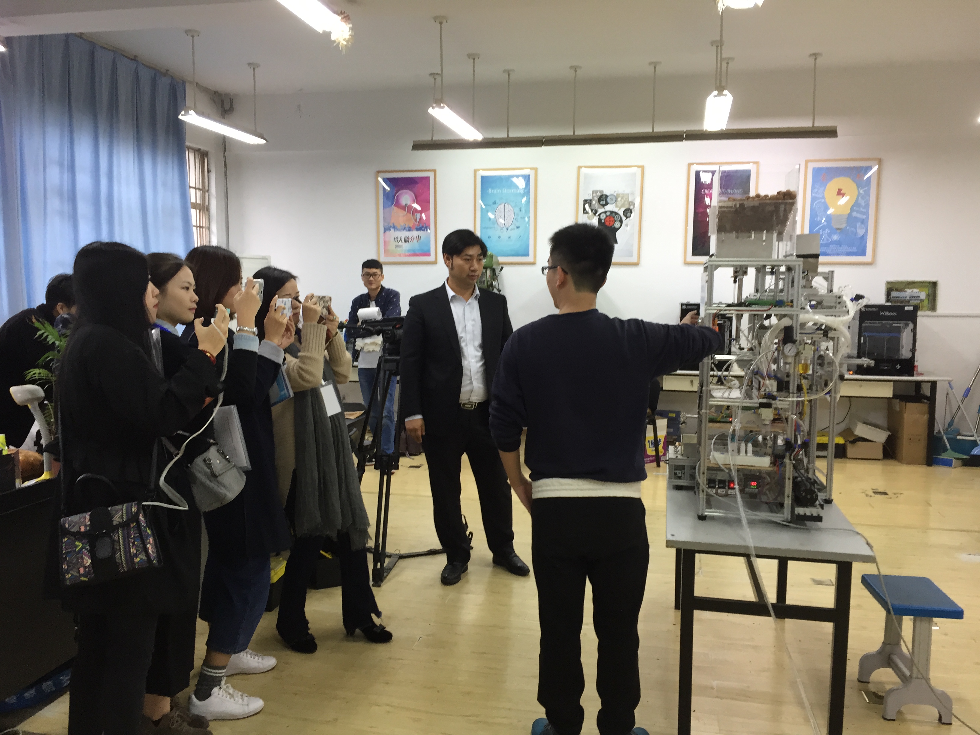 11月23日上午,新华网、中国新闻网、腾讯、网易、新浪等全国近20余家主流网络媒体走进温大,探秘学校的各大专业建设和创新创业教育,感受学校在面临新高考的挑战下所展示处的独特魅力。其中北方网、新浪浙江、荆楚网、中新社的四位记者走访了电子竞技博彩 。 电子竞技博彩 院长助理姜锐副教授就电子竞技博彩 专业建设、师资队伍、人才培养、国际化办学、创新创业教育等方面简要介绍了电子竞技博彩 的情况与特色。四位记者在听取了姜锐副教授的讲解后,饶有兴致地参观了电子竞技博彩 的大学生智造空间和学生科技创新成果展厅。记者们被电子竞技博彩 学生的科技创新作品所吸引,现场观看了屠佳炜同学操作演示其科技作品——小型全自动坚果包装机,该项作品获得了第七届全国大学生机械创新设计大赛一等奖,并吸引了中央电视台《我爱发明》栏目组前来采访拍摄,并将制作成专题片播放。