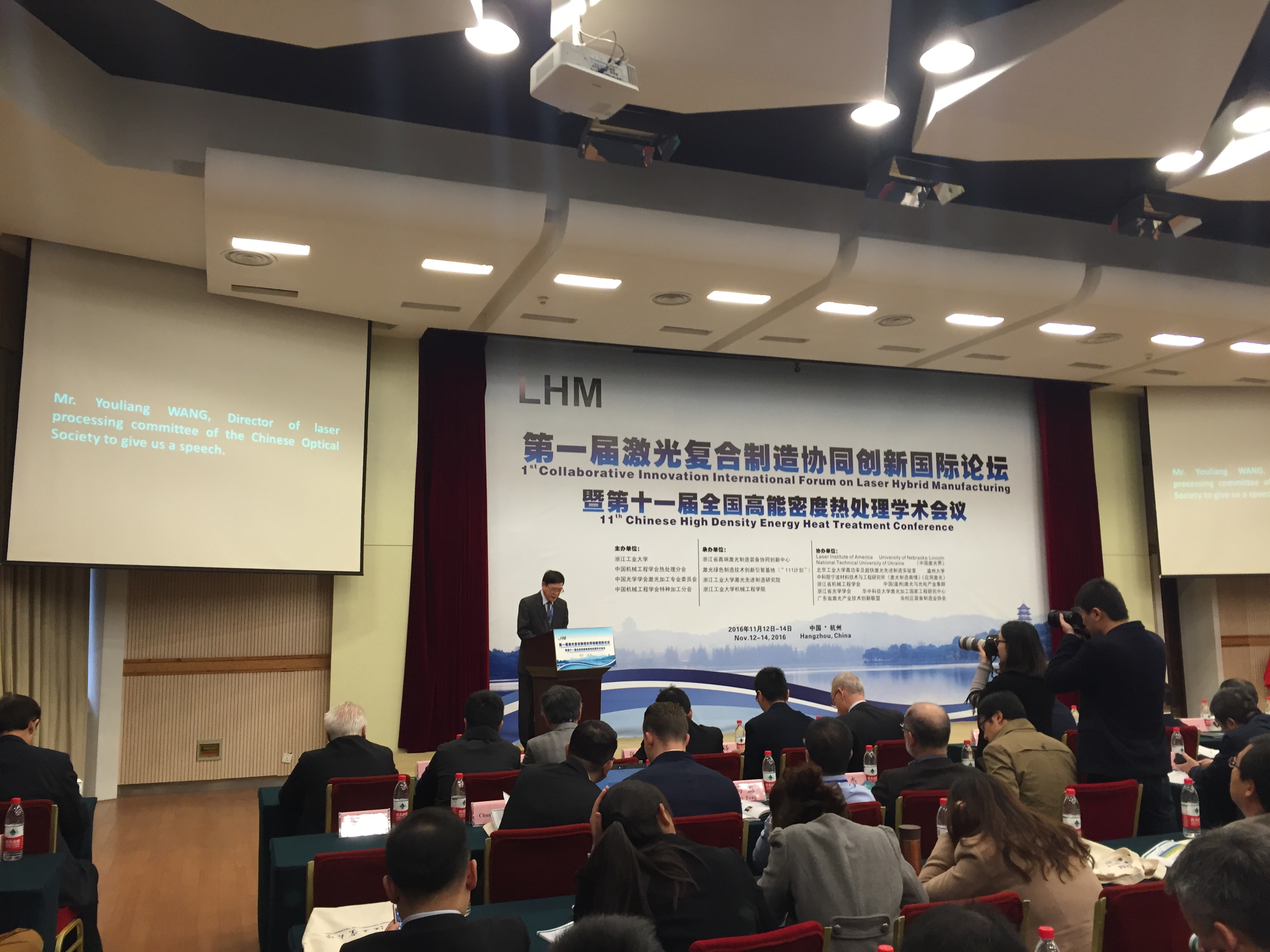 11月13日到14日,第一届激光复合制造协同创新国际论坛暨第十一届全国高能密度热处理学术会议在杭州浙江会议中心召开,电子竞技博彩 孙树峰副教授和他所指导的研究生邵勇参加了会议,并在分论坛上做了专题报告。