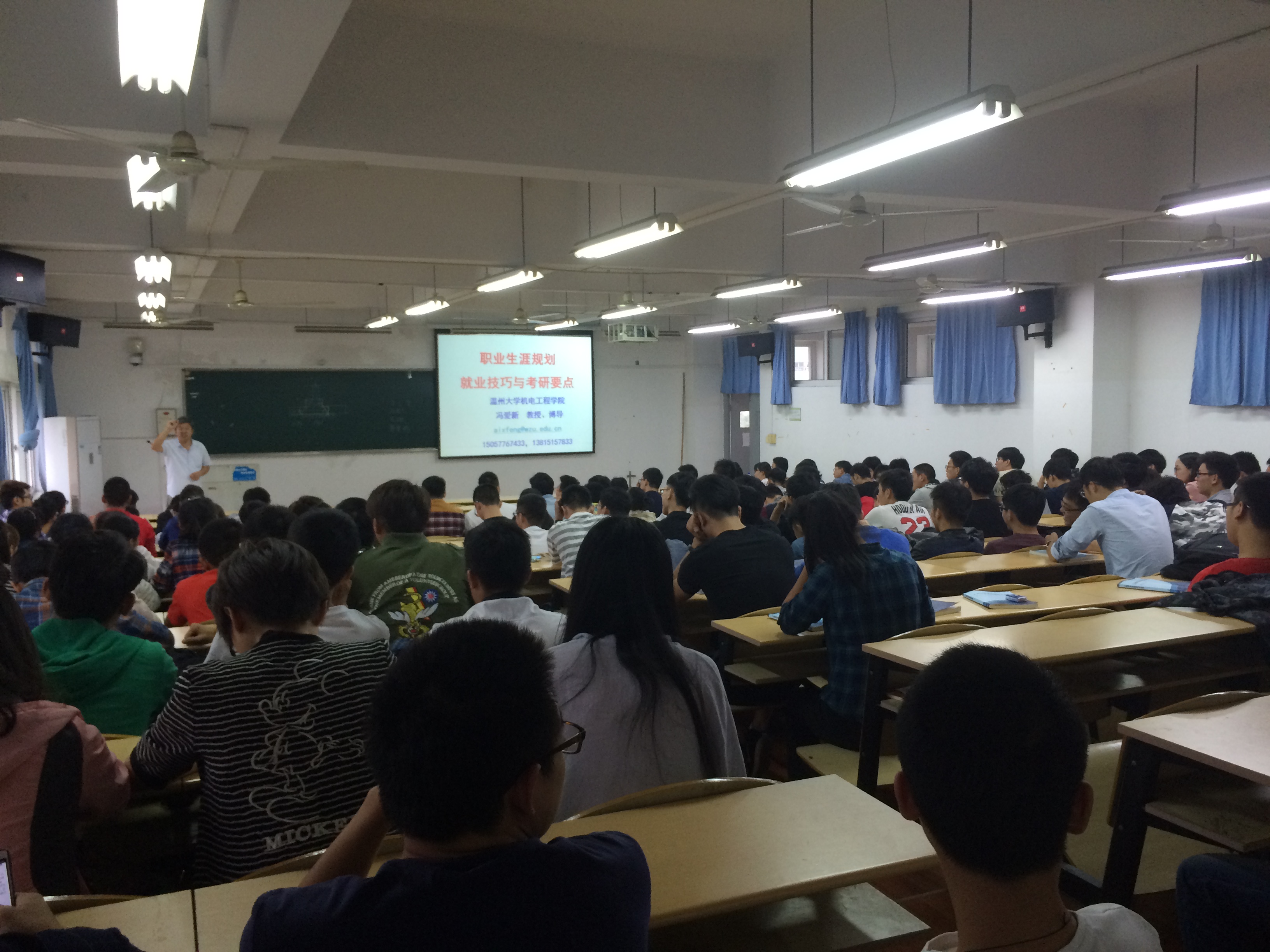 冯教授讲座结束之后,孙老师向大家通报了各班上学期期末考试成绩和四六级通过率,比较着班级之间的差距和优势,同时通报了各班上课出勤率、早晚自习出勤率,同时再一次重申了旷课制度、考试作弊制度,表明纪律的重要性。