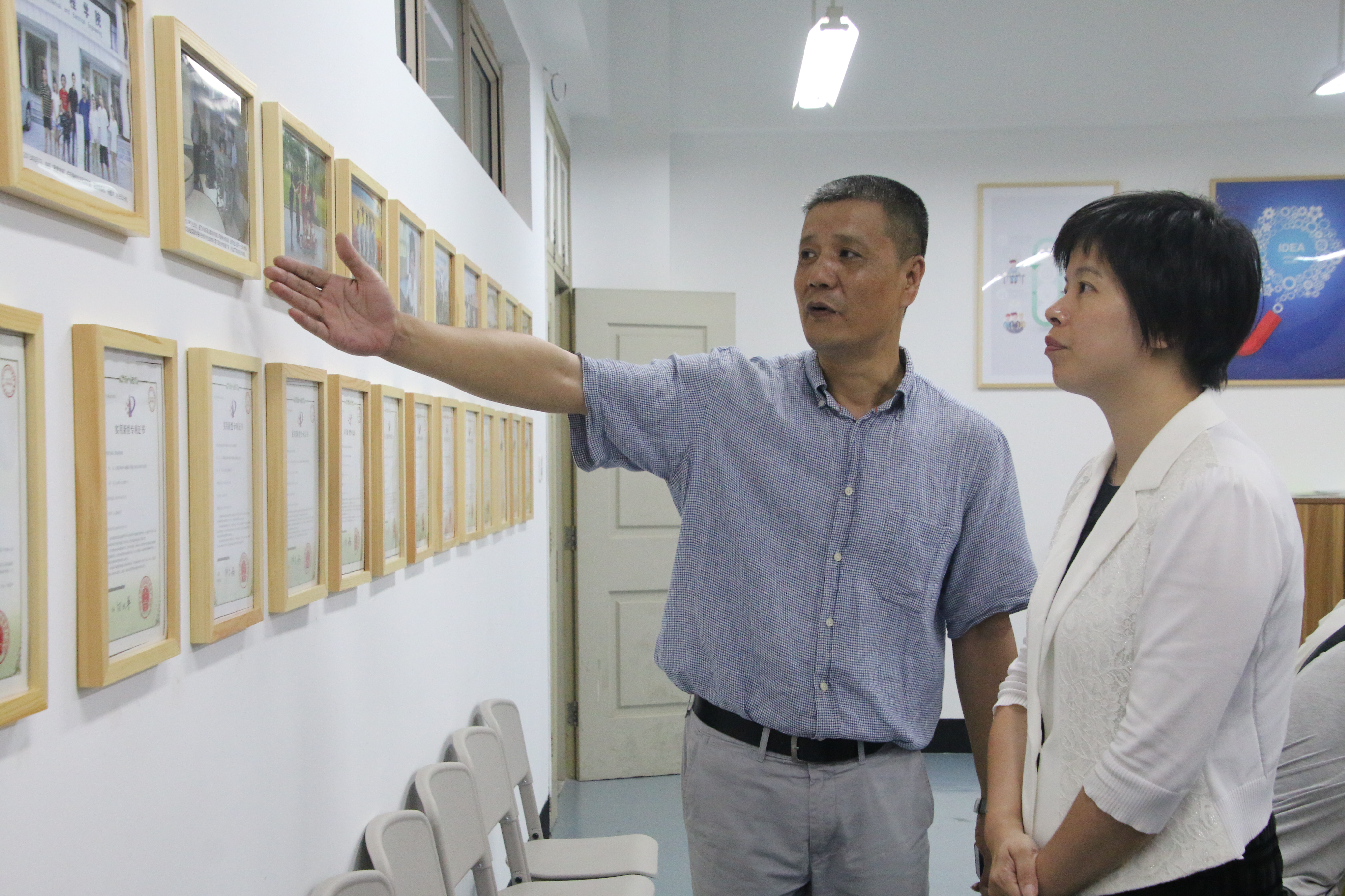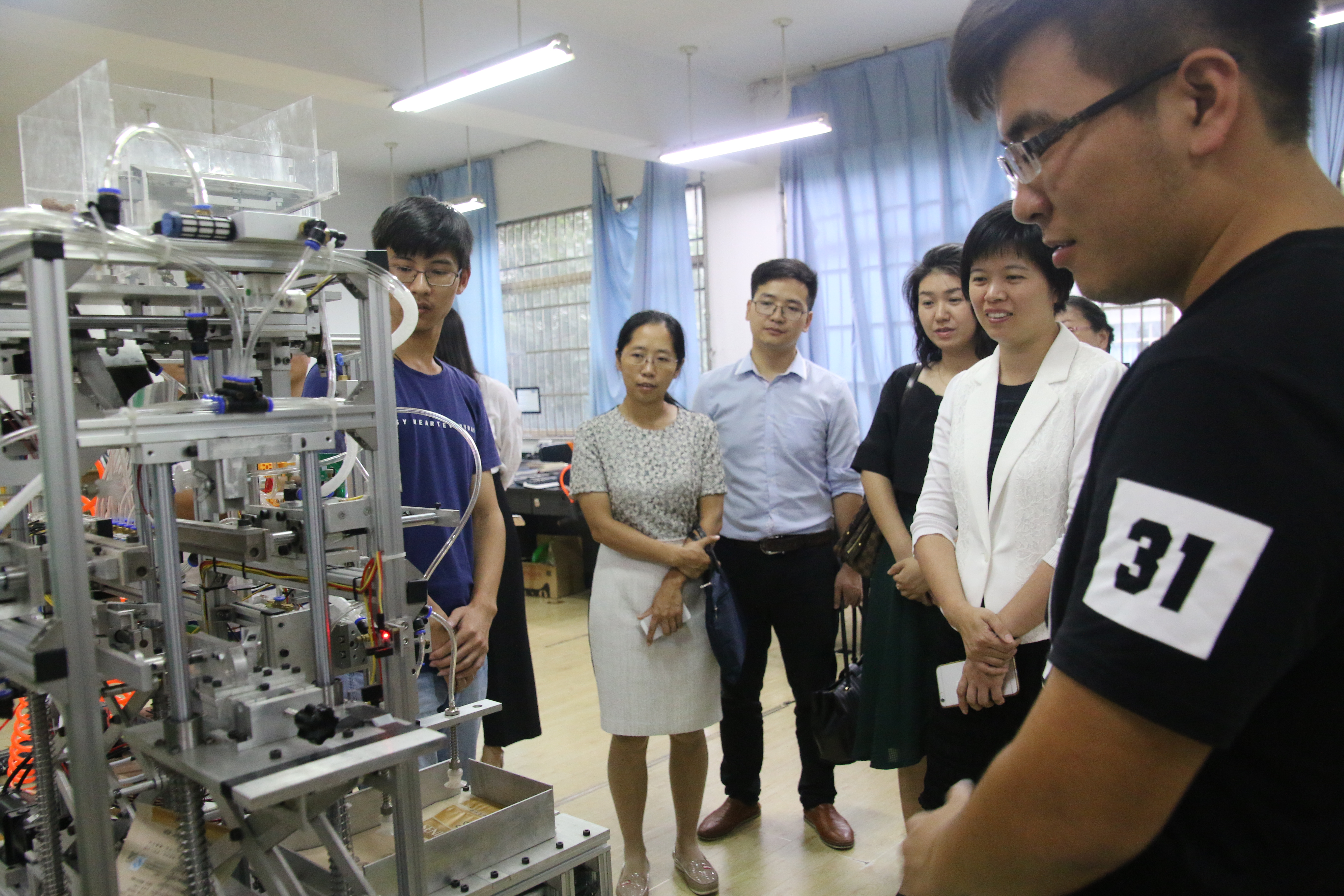 王慧琳副书记一行在电子竞技博彩 周荣书记的带领下参观了电子竞技博彩 的智造空间,周荣书记从电子竞技博彩 在各类国家、省市级竞赛中取得的成绩出发介绍了电子竞技博彩 近年来取得的优异成绩以及对于学生从大一开始就开展的竞赛培养计划。各兄弟院校的团委书记对于智造空间这一充分发挥师生创造力的创意大为称赞,希望能够加以借鉴。