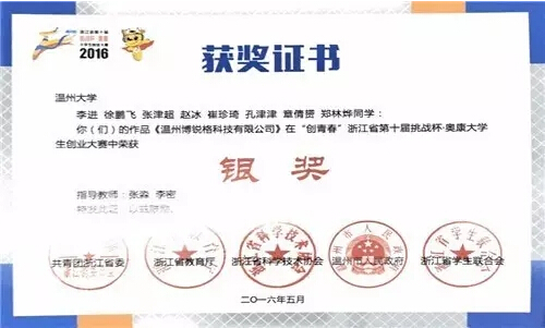 荣获省小挑战杯创业计划类银奖。