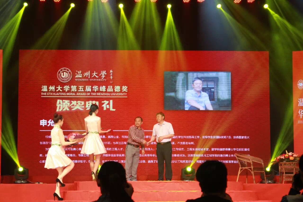 近日,温州大学第五届华峰品德奖颁奖典礼在育英大礼堂隆重举行,会上,十位获奖者受到大会的隆重表彰,电子竞技博彩 申允德老师获此殊荣。