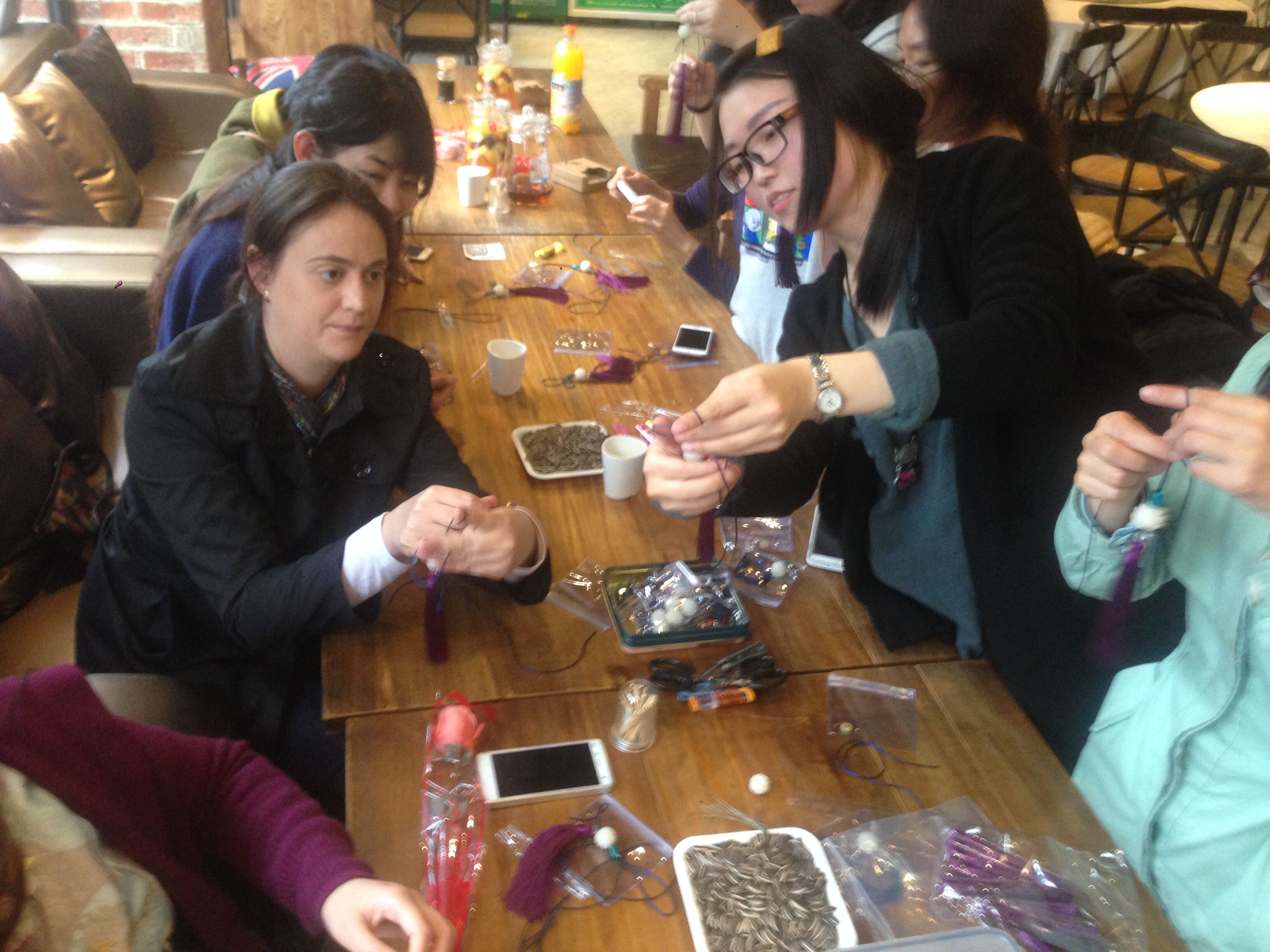 阳春三月,春风送暖,为了庆祝第106个国际“三八”妇女节,丰富电子竞技博彩 女教工的业余文化活动,3月8日,电子竞技博彩 工会组织全院女教工和女外教开展了一场别开生面的编绳串珠DIY活动。在专业老师的指导下,女教工们手下生花,平结、纽扣结、金刚结……将各种漂亮的白水晶、紫水晶和白玉菩提等珠子窜成美丽的手绳、项链和包挂等饰品。大家感觉到满满的成就感,纷纷都说又get了一项新技能。