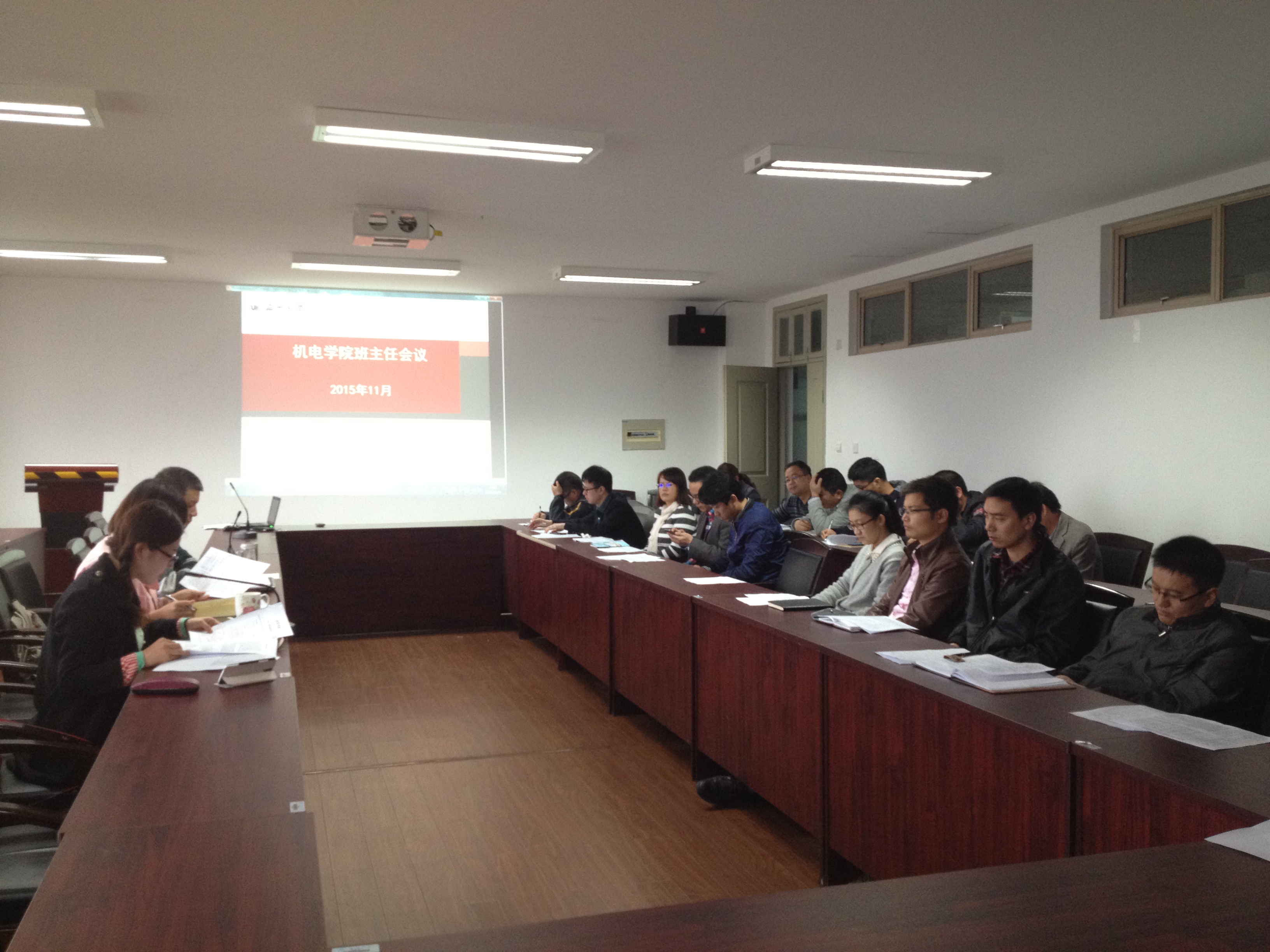 11月4日,十大电竞博彩排名 在6B503会议室召开全体班主任会议,十大电竞博彩排名 党总支书记周荣、党总支副书记李密出席会议,学生科辅导员孙双、林梅,机电电子竞技博彩 片儿警、来自步青学区的辅导员乔婉莹以及机电电子竞技博彩 全体班主任参加会议。