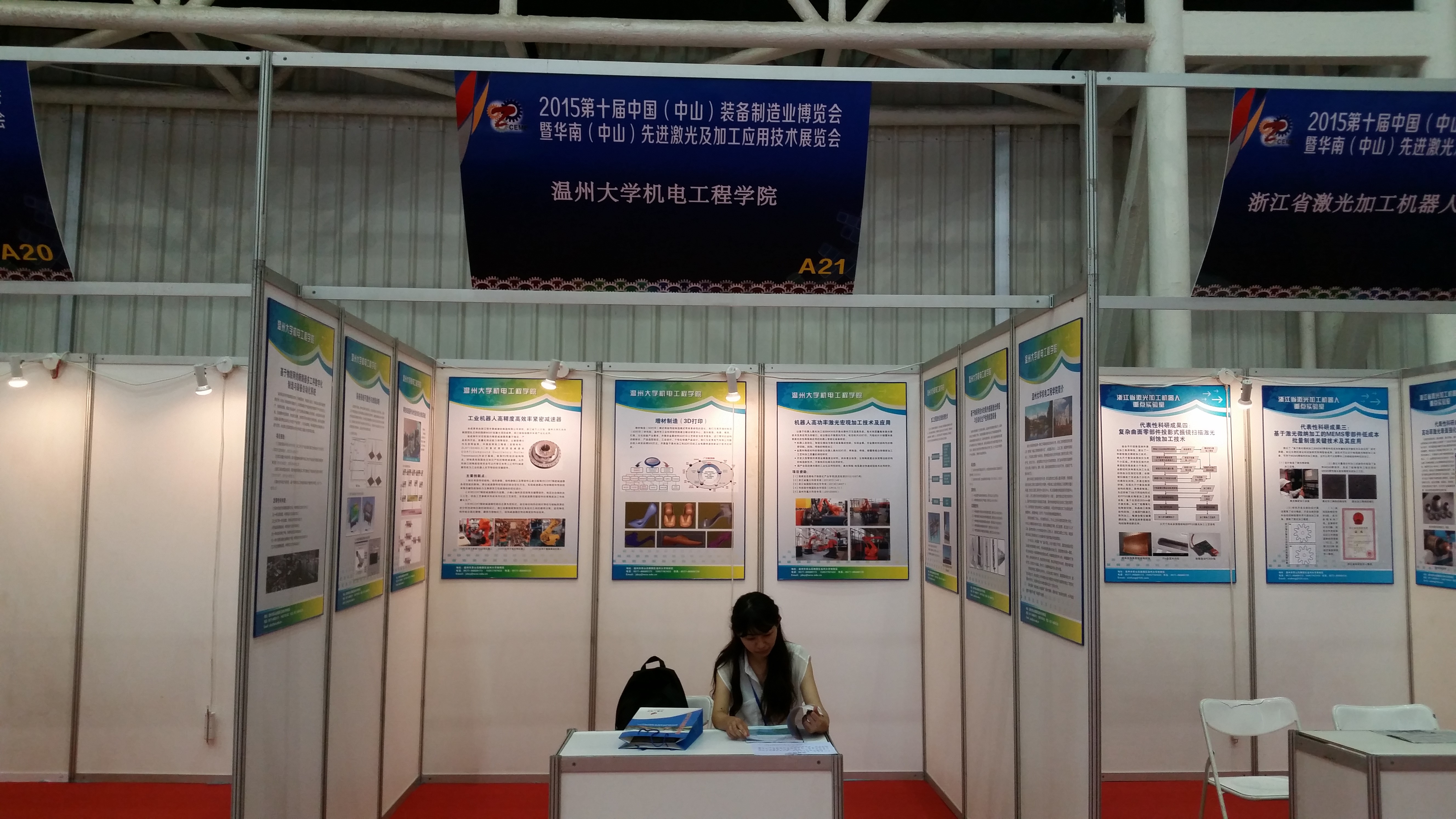 2015华南(中山)先进激光及工应用技术展览会在中山火炬国际会展中心举办,由中山市政府与激光加工专业委员会携手共同打造,来自世界各地的行业翘楚对最新科技等进行了展示。展示范围主要包括激光器和光导发光元件、激光加工系统、光学信息技术与光通信技术等。电子竞技博彩-十大电竞博彩排名 分别以电子竞技博彩 和浙江省激光加工机器人重点实验室为单位进行了两个展位共18块展板的展示。展示内容主要包括机器人高功率激光宏观加工技术及应用、在线监测、增材制造(3D)打印、工业机器人、物联网等多个方面的研究进展,取得了广泛关注,并与多名企业代表和研究人员进行了相关交流。