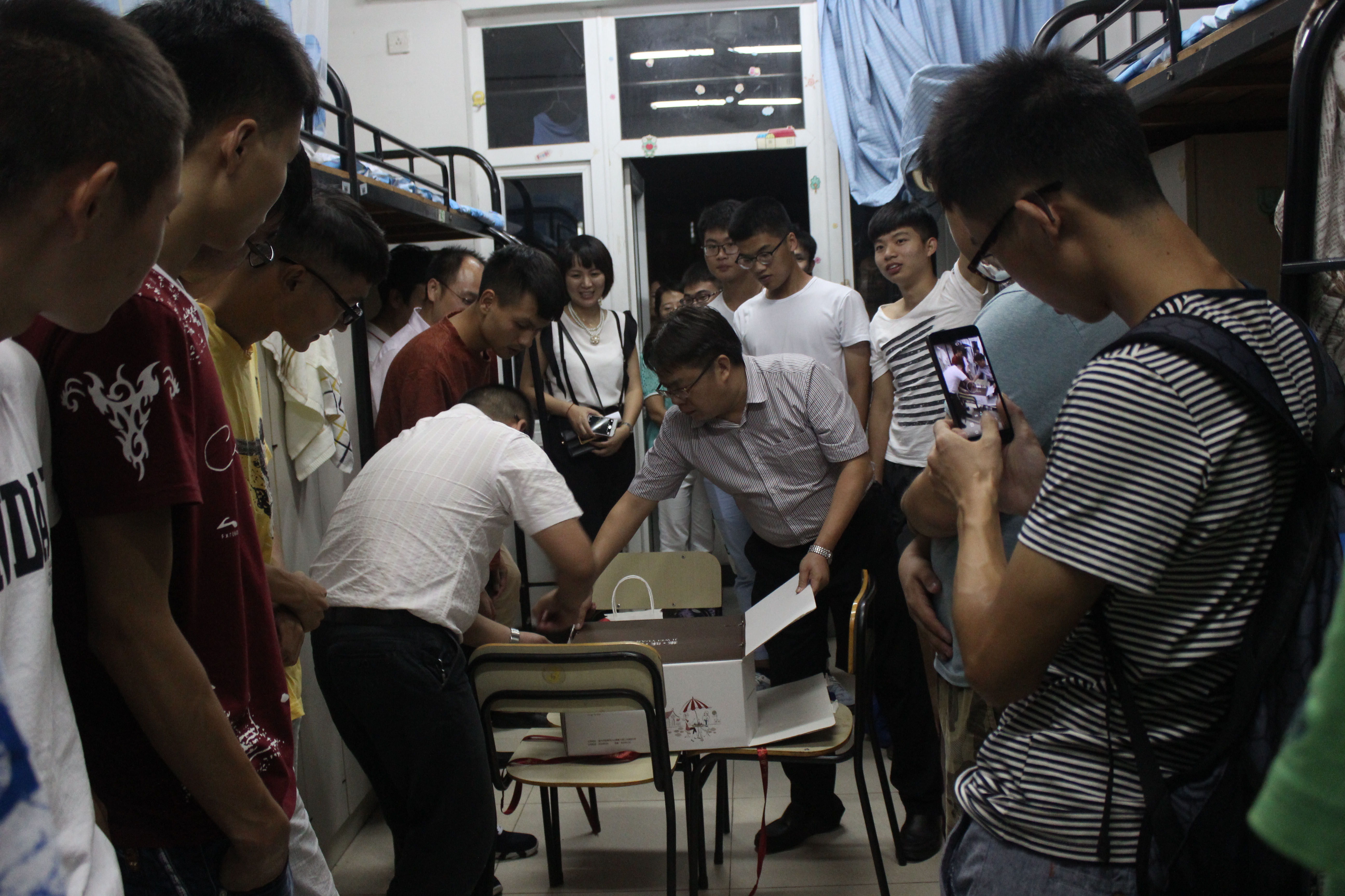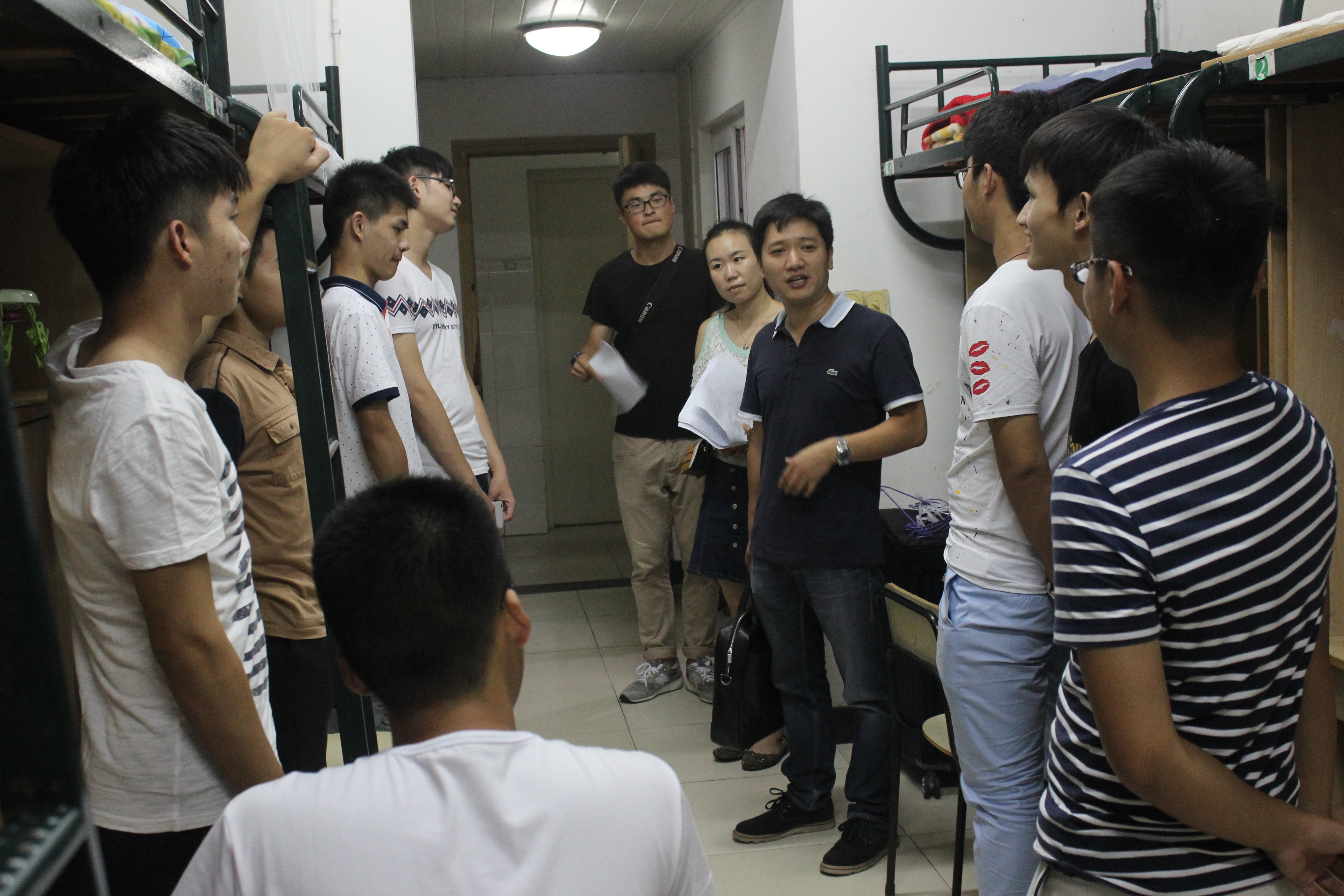 除了给新生过生日,报到当晚,在十大电竞博彩排名 周宏明院长、李峰平副院长、冯爱新副院长、李密副书记的带领下,十大电竞博彩排名 教研室主任、专业负责人、新生班主任、寝室导师及班主任助理到寝室看望了2015级新生。