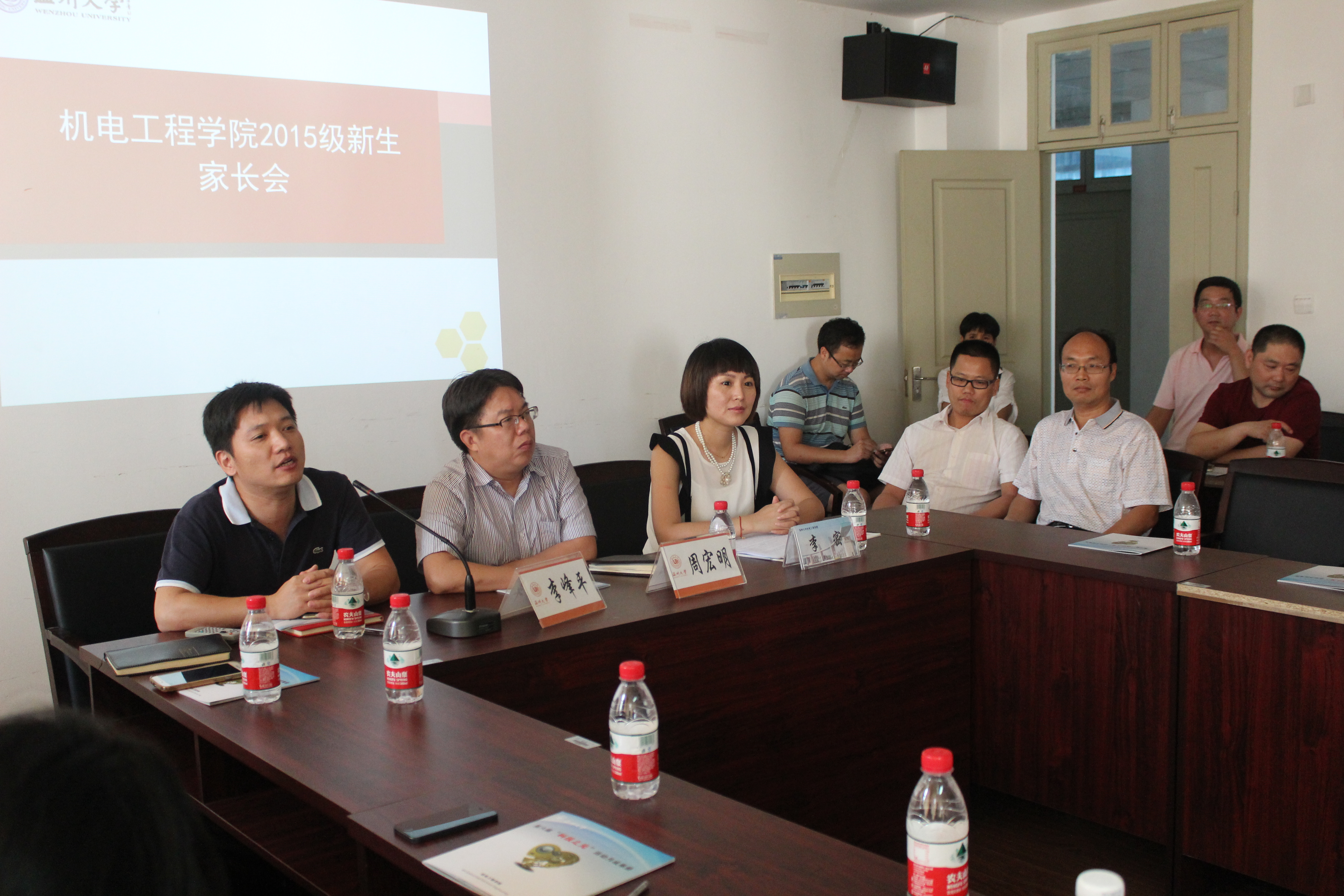 会上,李密副书记首先对2015级同学和家长来到十大电竞博彩排名 表示了热烈的欢迎,并为大家介绍了电子竞技博彩 的基本情况。周宏明院长向家长们详细介绍了电子竞技博彩 的专业建设和人才培养、课程设置和师资队伍、学科和科研等方面情况。周院长同时指出,人才培养是机电电子竞技博彩 的首要任务,电子竞技博彩 大力倡导国际化人才的培养,为学生的成长成才提供广阔的空间,希望家长和电子竞技博彩 一起努力,尽快帮助学生转变学习方式方法,同时注重自主学习、人际交往等各种能力的培养,使我们的学生成为社会有用之才。李峰平副院长介绍了电子竞技博彩 学生国际化交流情况、师资和课程设置,鼓励学生通过多种途径加强英语等学习,在夯实专业技能的基础上,提升自身竞争能力。李密副书记从学生管理的角度,介绍了电子竞技博彩 新生始业教育相关安排、电子竞技博彩 学生管理和学风制度、选课制度、学生就业情况,希望家长能多和电子竞技博彩 沟通联系,共同关注学生学业发展、职业规划和身心健康。