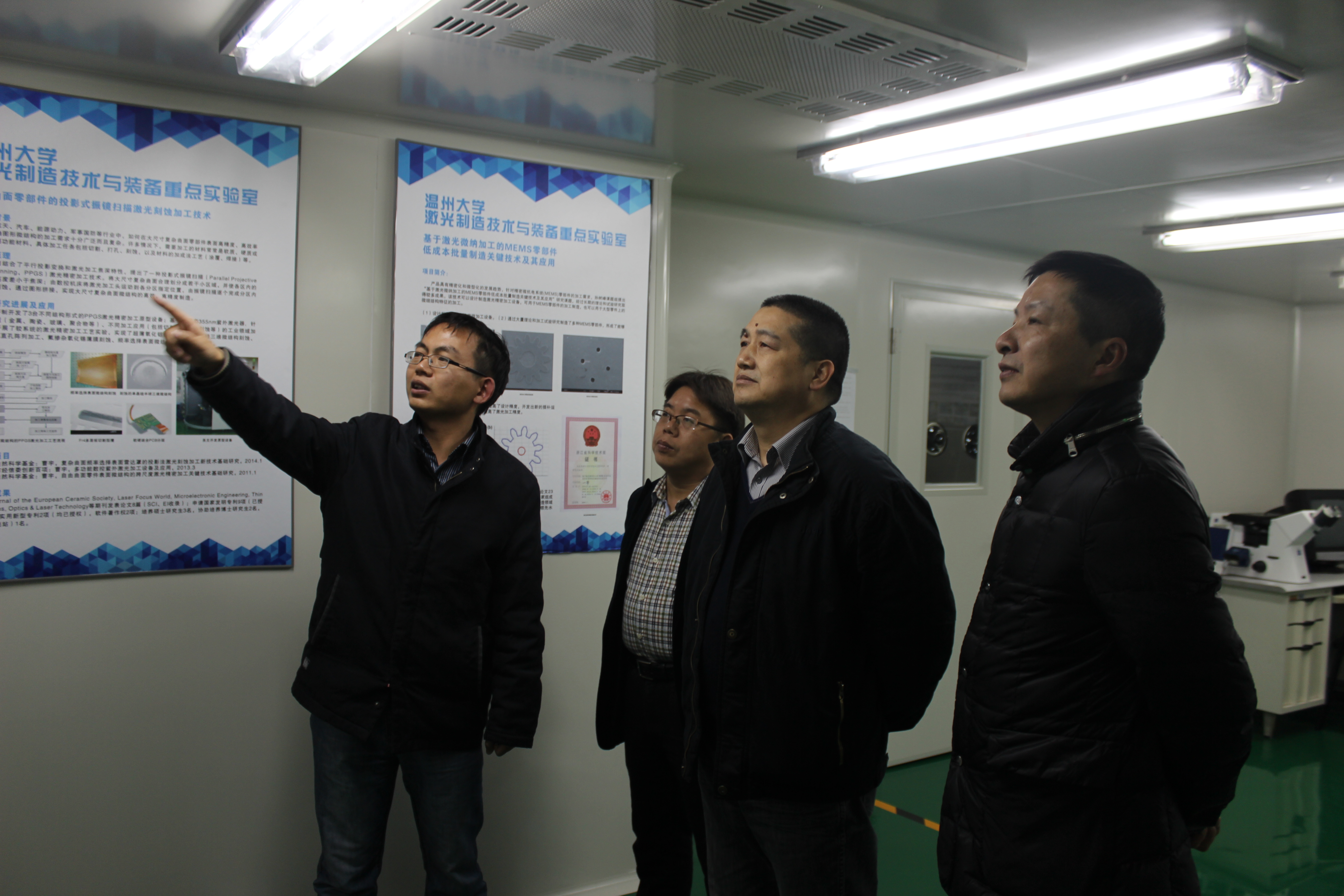 2015年1月6日下午,温州市经信委副主任徐竹良、处长胡华等一行3人来电子竞技博彩 调研机器换人情况。电子竞技博彩 常务副院长周宏明、副院长冯爱新、党总支书记方乐平和电子竞技博彩 部分教师共十余人参加了本次调研活动。