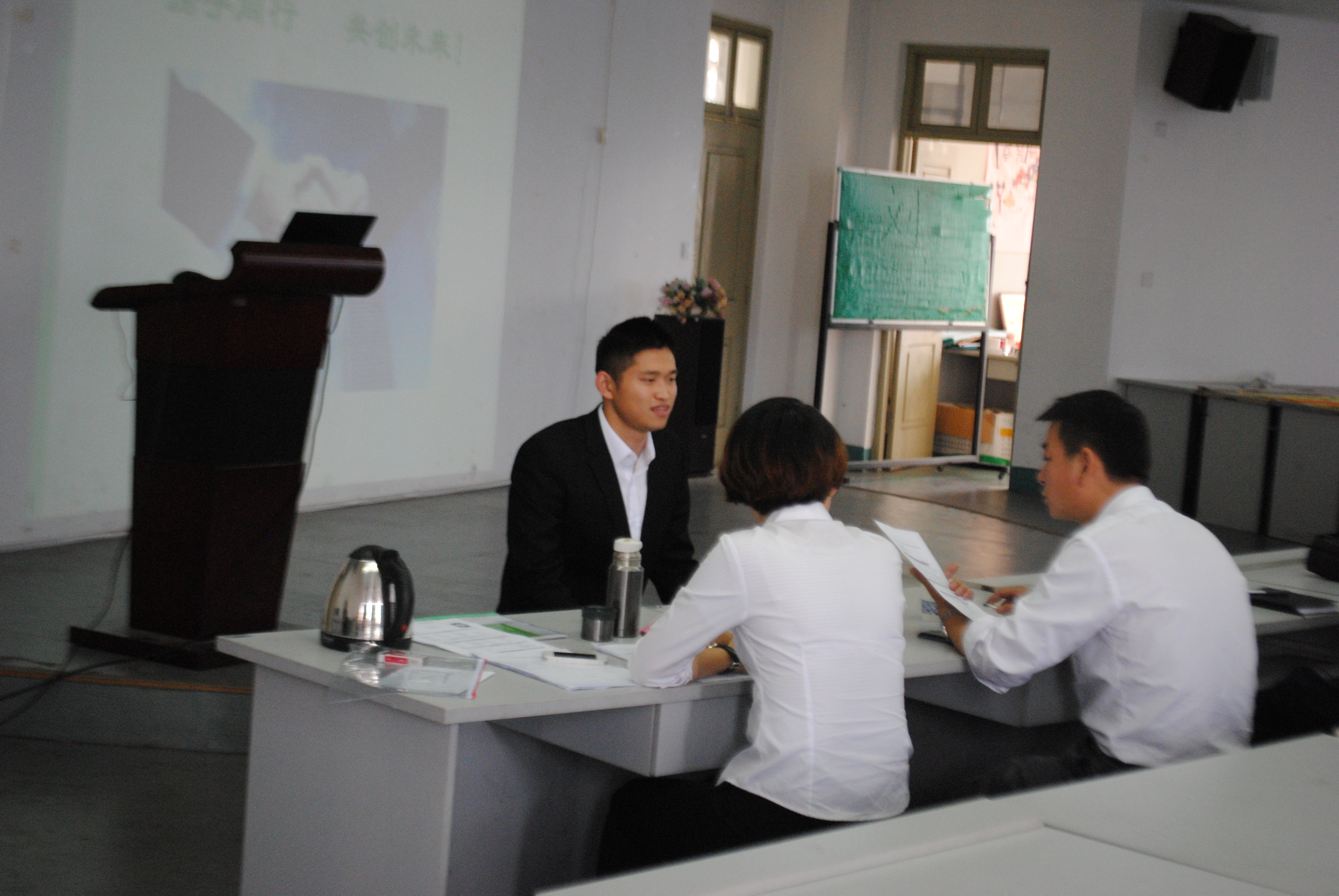 首先,人寿财险人力资源部马泽萍经理进行宣讲,介绍公司概况、发展历史、浙江省分公司基本情况、机关所组织构架及此次招聘的招聘岗位等。随后进行现场问答,毕业生们人寿财险公司自身及此次招聘的要求、发展空间等方面提出问题,面试官给与相应的解答。最后为现场面试环节,40多名有意向的毕业生依次轮流进行面试,其余毕业生们则在教室有序等待。招聘会现场气氛热烈而融洽,同学们和企业的人员进行了良好的互动,双方都表示对此次招聘会相当满意。会后,人寿财险表示,此次招聘取得满意效果,将继续加强与电子竞技博彩 的合作,实现共同发展。