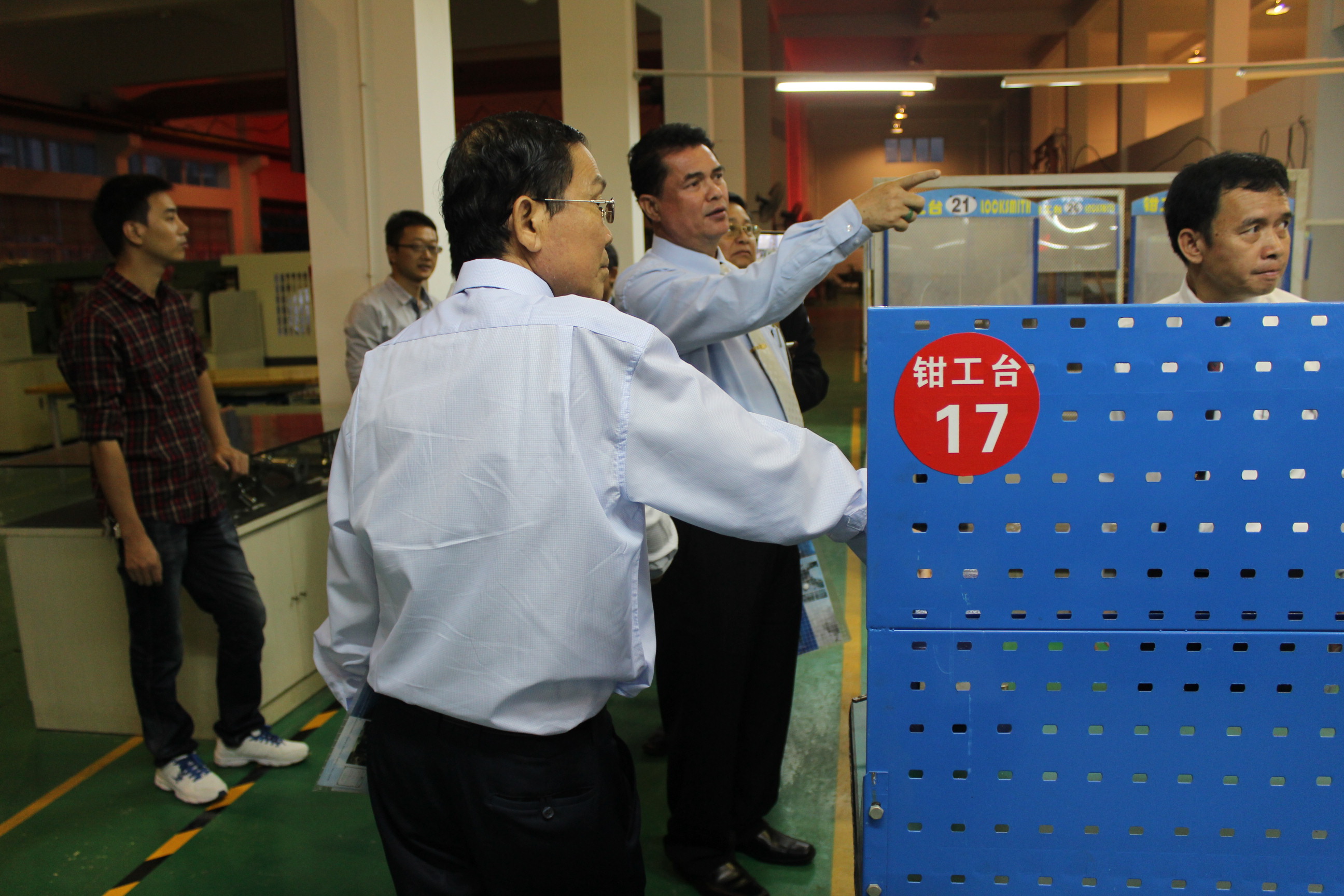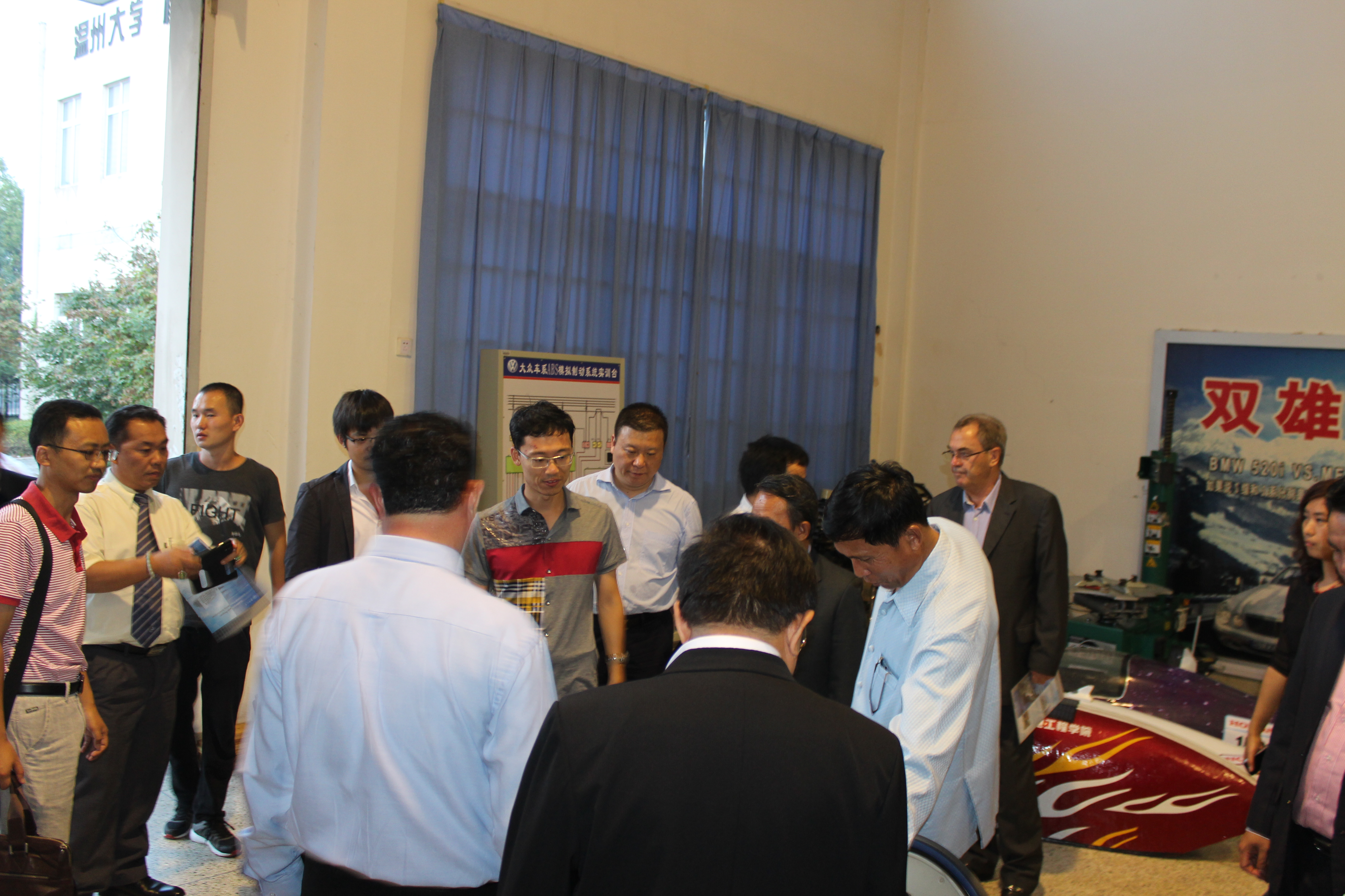 老挝学校代表团首先参观了电子竞技博彩 汽车服务工程实验室。汽车服务工程教研室主任周斯加博士向来访人员介绍了汽车工程专业的实验室建设和人才培养情况。随后,老挝学校代表团参观了电子竞技博彩 工程训练中心,详细了解了工程训练中心的软硬件设施和运行情况。
