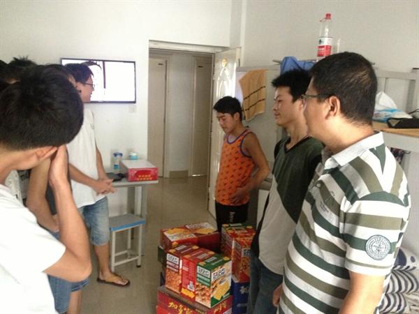 8月26日,十大电竞博彩排名 总支书记方乐平率电子竞技博彩 姜锐、周晨、瞿建武、林礼区等老师一行驱车至我校国家级校外实践教育基地-合兴集团慰问在暑假期间进行企业实习的学生,并给同学们带去了方便面、牛奶等慰问品。在合兴集团人力资源部的安排下,老师们与实习同学进行了座谈。合兴集团人力资源部马双兵经理就企业实习的相关内容和安排给同学们进行了说明和解释;同学们也纷纷发言,介绍自己的实习体会和收获,并对实习工种和时间安排提出一些有益的意见,大家均表示对企业的实习环境和后勤保障非常满意。