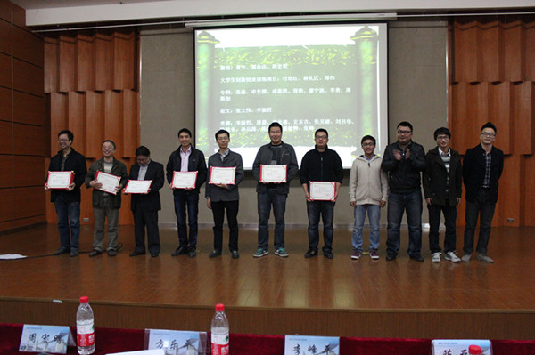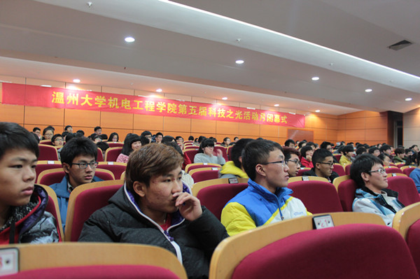 12月4日晚6点半,由十大电竞博彩排名 主办的第五届“科技之光”活动月闭幕式暨2013年度科技创新成果颁奖典礼在温州大学雁山厅举行。出席本次活动的嘉宾有:十大电竞博彩排名 党总支书记方乐平、机电电子竞技博彩 常务副院长周宏明、机电电子竞技博彩 副院长李峰平及机电电子竞技博彩 各教研室、实验室教师代表。
