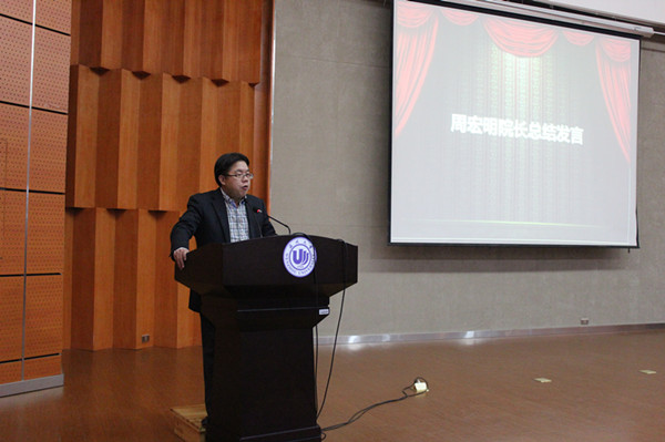 整个活动在喜悦、感恩中逐渐接近了尾声,院长周宏明为本次闭幕式做了总结发言。他在讲话中提到:“科技之光”活动月是电子竞技博彩 课外教学实践的主要组成部分,旨在“巩固学生的理论知识、培养他们的动手能力和实践操作能力”。电子竞技博彩 对“科技之光”活动十分重视,在经费上予以大力的支持,还成立了由教师组成的专业指导队伍,帮助学生成长、成才。在“科技之光”活动月的促进下,电子竞技博彩 同学不仅多次在校级、省级、国家级比赛中获奖,而且还在2013年韩国举行的国际比赛中斩获银奖。令人激动的还有学生的科技创新意识和能力的大大提升,电子竞技博彩 季超扬等同学的发明“多功能剥蒜机”更是登上了中央电视台《我爱发明》栏目的荧屏,这一切都是全院上下一心、共同前行的完美注解。