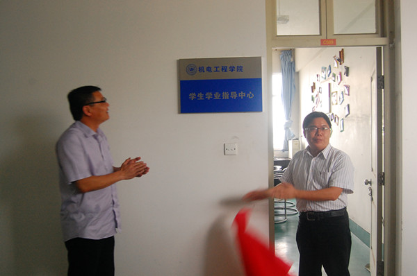 最后,在与会教师和同学的热烈掌声中,学生处处长王定福和周宏明常务副院长一起为十大电竞博彩排名 学业指导中心揭牌,宣布机电电子竞技博彩 学生学业指导中心正式启动。