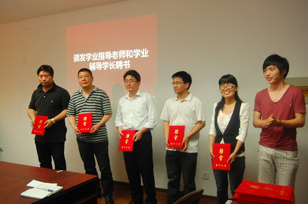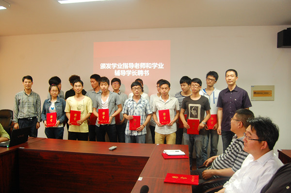 随后,学生会主席卢和煜为首批受聘的5位学业指导老师颁发聘书;步青学区党总支书记周东、组织部副部长金庆良为24位学业辅导学长颁发聘书。学业指导教师代表姜锐在发言说,学业指导中心的成立对于加强教师和学生的沟通和交流提供了有效的平台,作为指导教师,不会辜负电子竞技博彩 和同学的信任,将更好地为学生成长、发展给予引导和帮助;2011级卓工班学生戴昱侃作为学业辅导学长代表发言,她说,作为一名预备党员非常荣幸被聘为学业辅导学长,抱着反哺的心情,通过帮助学弟学妹来回馈长久以来师长的关怀和帮助。她代表学业辅导学长承诺,他们会细心、耐心地辅导学弟学妹,和他们分享自己的学习心得,为他们学业进步提供帮助,与他们共同成长。