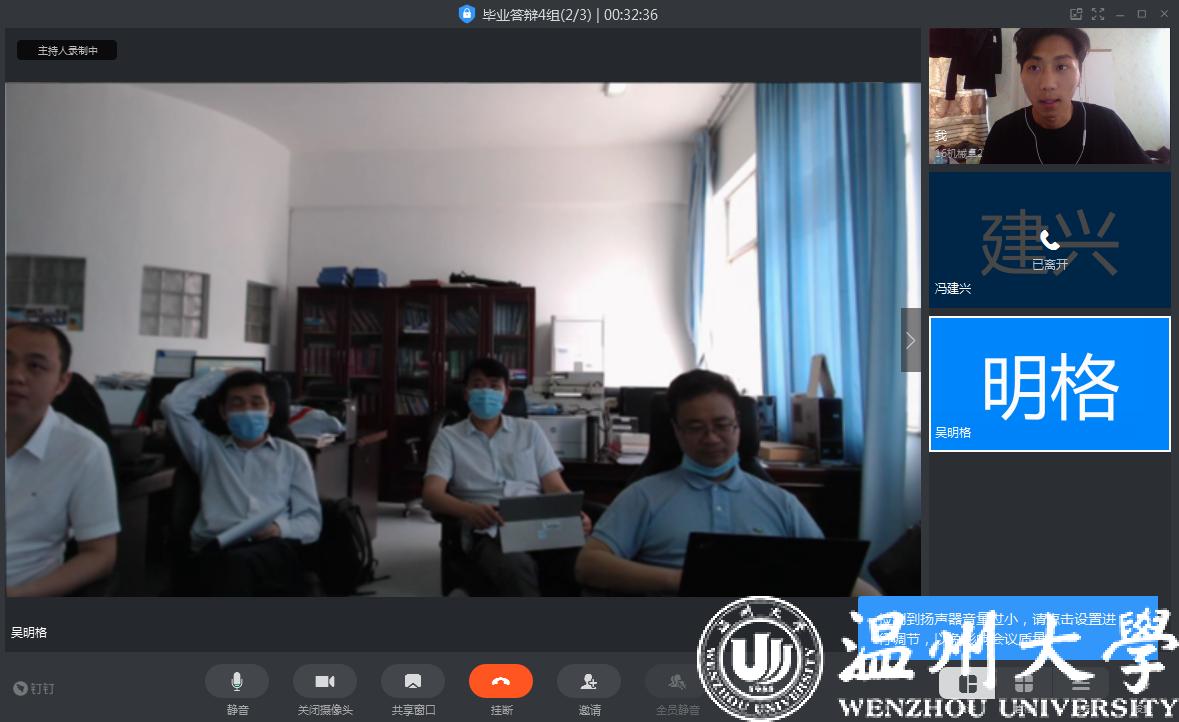 为切实响应教育厅“停课不停学、停课不停教”精神号召,减少新型冠状病毒肺炎疫情对毕业生的影响,根据温州大学《关于2019-2020学年第二学期本(专)科学生返校教学工作安排的通知》,十大电竞博彩排名 各专业在前期网络调试调研的基础上,分别采用腾讯会议、钉钉会议、ZOOM 会议平台“云答辩”的方式,开展2020届本科毕业设计(论文)答辩工作。