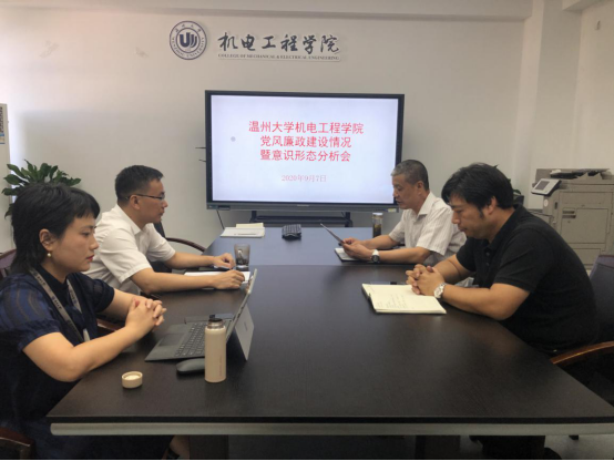 2020年9月7日下午,机电电子竞技博彩 党委在机电楼6C301会议室召开党风廉政建设情况暨意识形态分析会。院党委书记周荣、副院长姜锐、副院长李勇、副书记黄玮参加了本次会议。会议由院党委书记周荣主持。