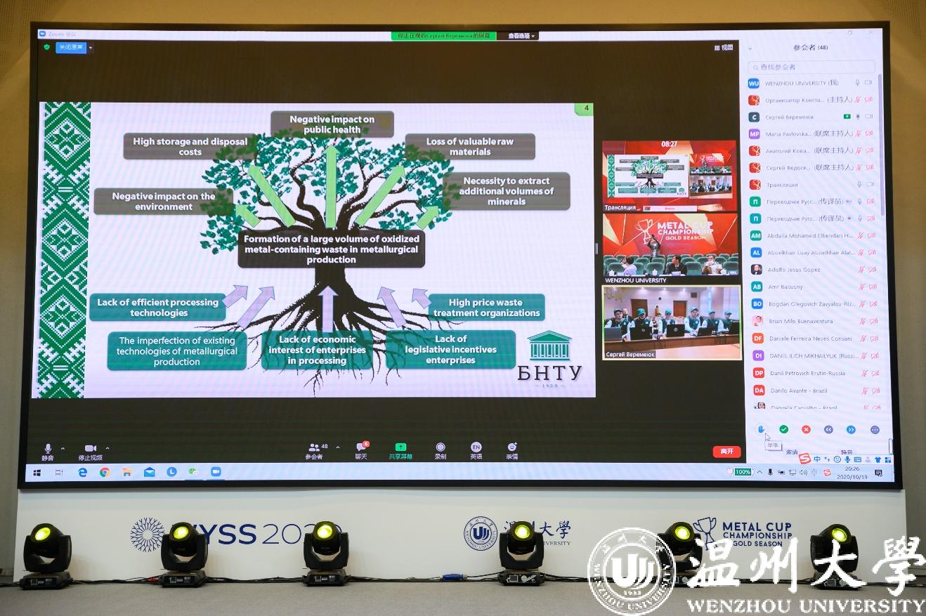 10月19-20日,作为2020世界青年科学家峰会的核心活动之一,第五届国际“金属杯2020金色赛季”总决赛在温州大学举行。我校姚旭凯、李强、汪健坤、王晓等4位研究生在导师陈希章教授的带领下,作为唯一的中国代表队参加了本次决赛,获得品牌单项奖。