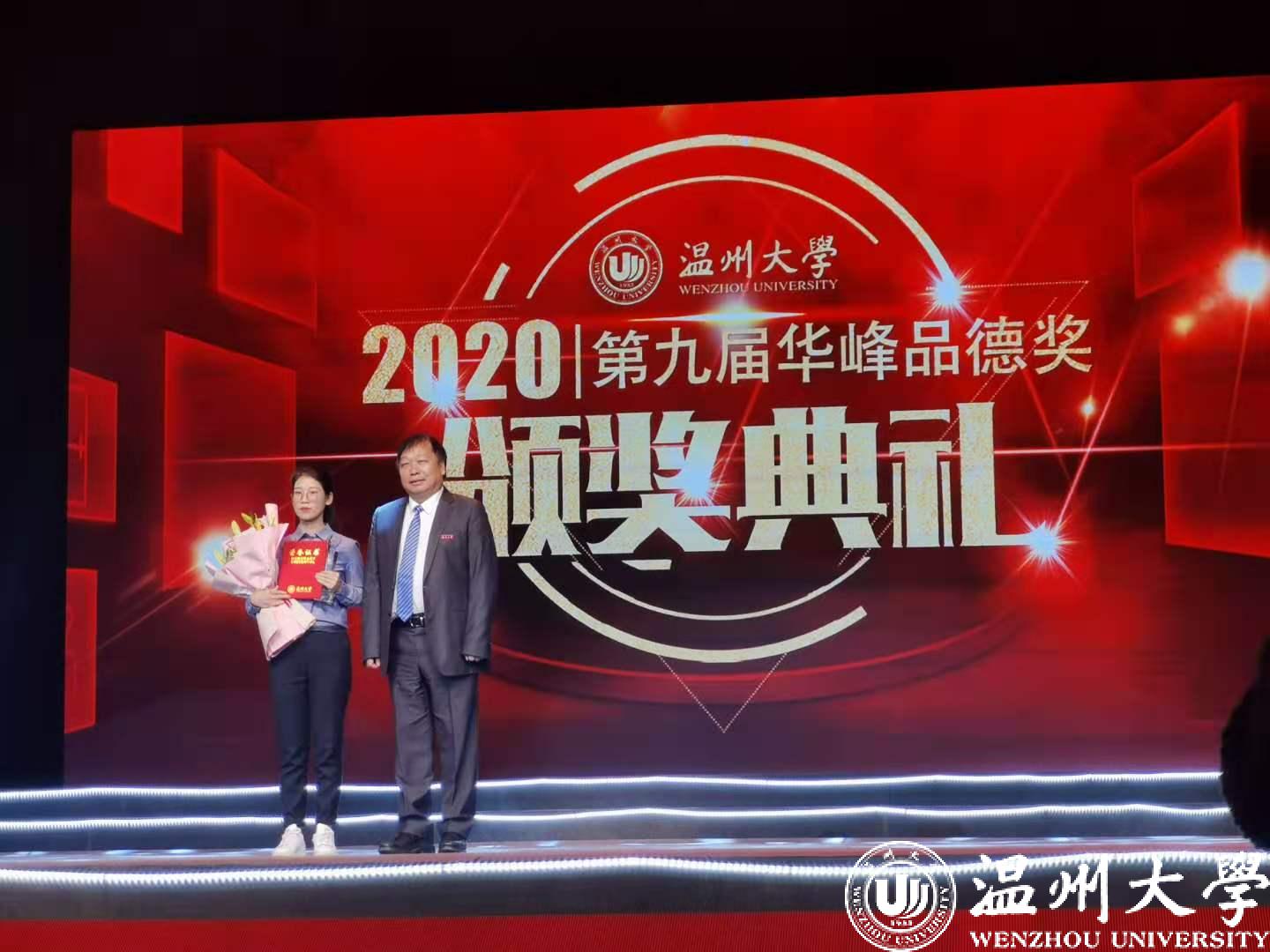 大山外的世界不乏学习的好手,但潘俏菲不断创造一个又一个的奇迹,自强不息的她成功实现了从专科、专升本、硕士研究生、博士研究生一路以来的华丽转身。谁也不知道她是凭借什么做到的,她每次回答都是:“努力”。作为电子竞技博彩-十大电竞博彩排名 2017级硕士研究生,在温州大学的三年时间里,她发表学术论文3篇(其中以第一作者发表SCI二区TOP2篇),申请发明专利3项,获得中科院、同济大学和西安交通大学等双一流院校博士复试资格,最终选择同济大学攻读博士学位。她还获得2020届省级优秀毕业生、优秀学生干部等荣誉称号,连获3次获得温州大学研究生学业一等奖学金、连续担任三年班级团支书。在刚刚结束的2020年温州大学第九届“华峰品德奖”的颁奖典礼现场,凭借她自身的不懈努力,成为本次华峰品德奖获得者。这些看似简单的荣誉称号,反映出潘俏菲三年如一日,从未松懈的科研生活,周围的人评价潘俏菲最多的是说她是铁人,而她每次总是一笑而过,转身又继续扎进自己的课题之中。