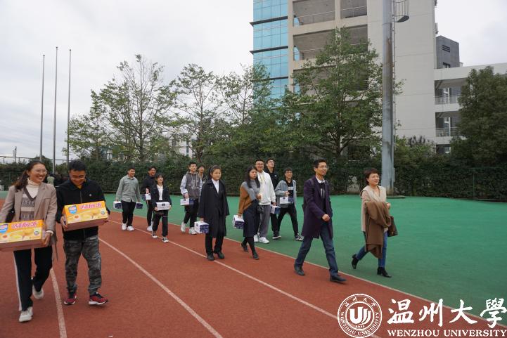 2020年11月28日下午,电子竞技博彩 党委副书记黄玮、学工办辅导员杨奇、刘言君、史凤娟等一行人,与团委、学生会各部门学生干部一起看望了正在参加军训的19级本科生。