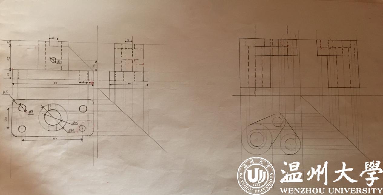 1.此次周六下午的机械制图考试,考查了我们的三视图,尺寸标注以及空间想象能力,对我的画图能力是又一次的提升,加深了对尺寸标注的理解与记忆。考前还是比较自信的,因为只有两道题我觉得应该很快就好了,但在考试的时候发现并没有我想象的那么简单,制图的学习果然还是任重而道远啊。