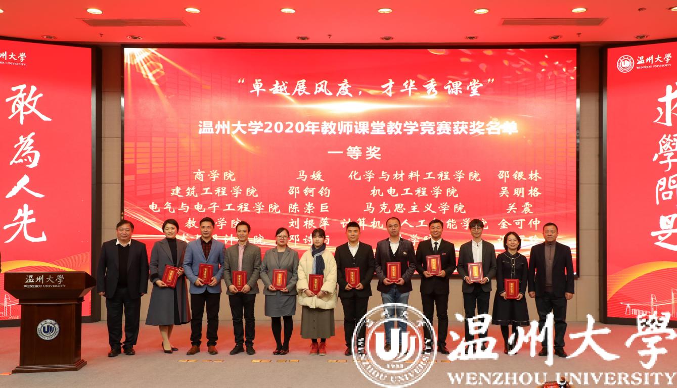 12月26日,电子竞技博彩 教师在温州大学第二届教师课堂教学竞赛中获得佳绩,吴明格老师获得一等奖,章城老师获得二等奖。