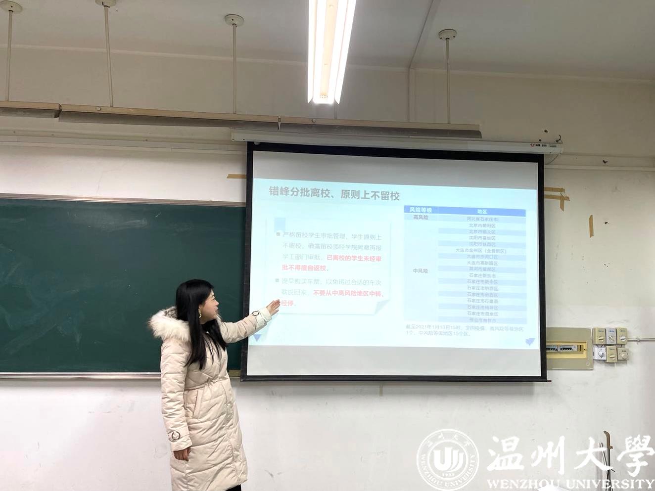 假期即将来临,为了让十大电竞博彩排名 全体同学度过一个快乐、安全的寒假。各班级班主任以及全体辅导员于2021年1月11日和2021年1月12日两日分批次的为全体学生召开了2021年离校前安全教育主题班会。