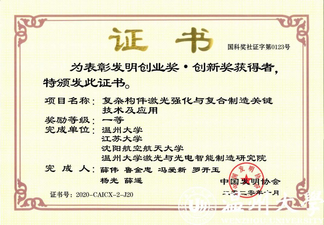 该项目由我校薛伟教授主持,温州大学、江苏大学、沈阳航空航天大学、温州大学激光与光电智能制造研究院等合作完成,主要围绕国家重大战略需求,通过理论计算与试验研究相结合,技术开发与重大工程应用相结合,在高端复杂构件激光冲击强化与复合再制造理论、关键技术和成套装备等方面取得了一系列创造性成果。理论突破了我国航空发动机领域一直存在的复杂构件激光强化和再制造难题,填补了国内空白。目前部分指标已经达到国际领先水平,被广泛应用在航空发动机、大飞机、汽轮机、重型机械和汽车零部件抗疲劳制造和再制造领域,引领着我国高端构件激光强化和再制造行业技术进步,提升了我国的国际竞争力。其中高端复杂构件激光冲击强化与复合再制造理论、关键技术和成套装备等获得发明专利47件,SCI论文被美国工程院院士、中国科电子竞技博彩
