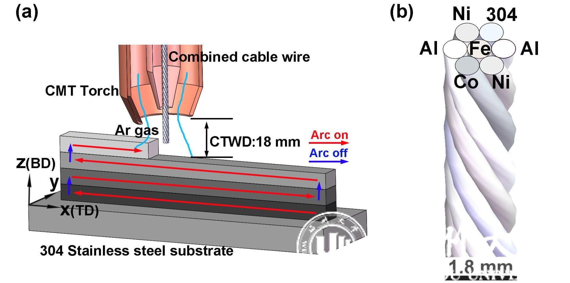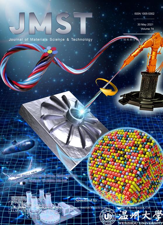 近日,电子竞技博彩-十大电竞博彩排名 研究生沈晴凯等人在陈希章教授的指导下完成的科研论文“Fabrication of bulk Al-Co-Cr-Fe-Ni high-entropy alloy using combined cable wire arc additive manufacturing (CCW-AAM): Microstructure and mechanical properties”在国际著名工程技术TOP期刊《Journal of Materials Science & Technology》(IF=6.155)上发表,并被遴选为封面论文。该论文提出了一种采用新型绞丝进行高熵合金电弧增材制造的方法,为大尺寸和复杂形状高熵合金材料及产品的制造提供了一种高效高质有前景的制造方法,制造的Al-Co-Cr-Fe-Ni高熵合金达到强度2.8GPa和塑性42%的优异结合。该方法突破后,系列成果陆续发表在JOURNAL OF ALLOYS AND COMPOUNDS、MATERIALS SCIENCE AND ENGINEERING A等工程技术TOP期刊发表。