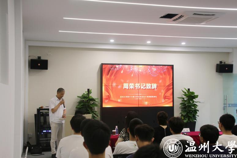 揭牌仪式结束后举行了温州大学第十三届大学生机械设计竞赛颁奖典礼。在2021年5月19日举行的温州大学第十三届大学生机械设计竞赛中,共有来自十大电竞博彩排名 、计算机与人工智能电子竞技博彩 和电气与电子工程电子竞技博彩 的20个团队、98名学生参加,经过激烈的角逐,评比出了2个一等奖,4个二等奖和6个三等奖。周荣书记、姜锐副院长、王晓倩老师分别为获奖团队颁奖。