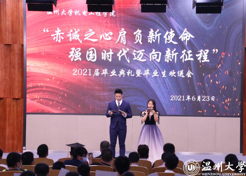 《 忆往昔,流年似水 ;展未来,意气风发》VCR将全场气氛掀上高潮,视频中老师的谆谆教诲,既骄傲于学生的成长,也感激于学生的包容,期待2021届机电学子毕业后,仍能发扬“求学问是,敢为人先”的校训,做有崇高理想和高尚品德的人。