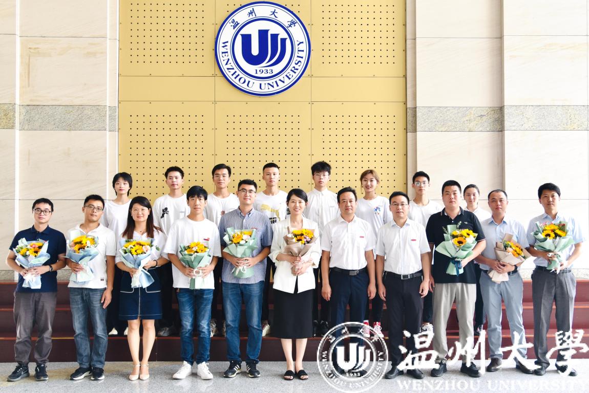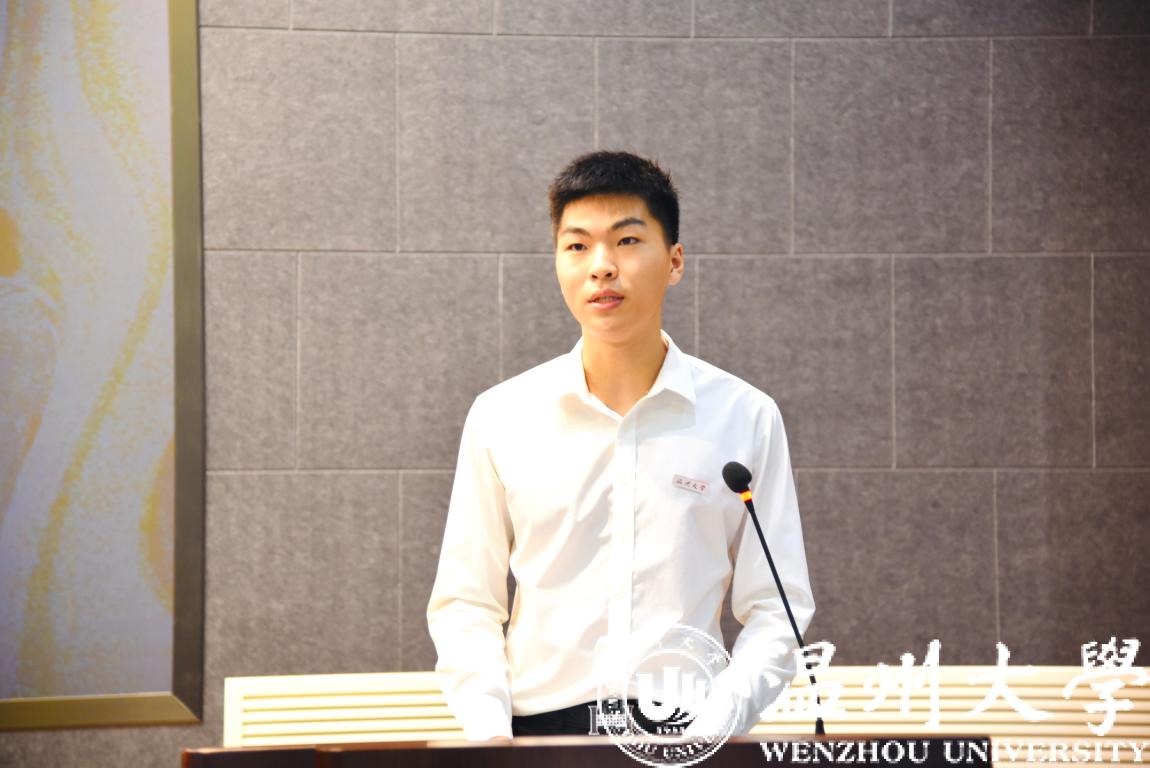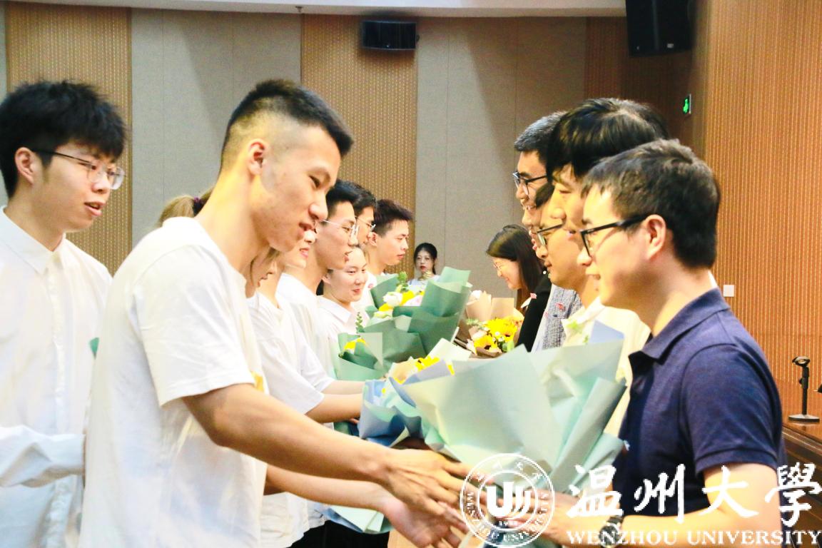 其次,新生班主任、各班代表上台,班主任为新生佩戴温州大学校徽,赠送学生手册和笔记本,期望学生能在未来的学习生活中秉承“求学问是,敢为人先”的校训。新生代表也贴心的为班主任提前送上教师节的鲜花,浓浓师生情。