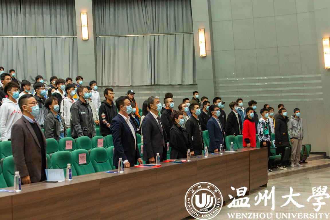 国歌奏响,全体师生肃立,齐唱国歌。
