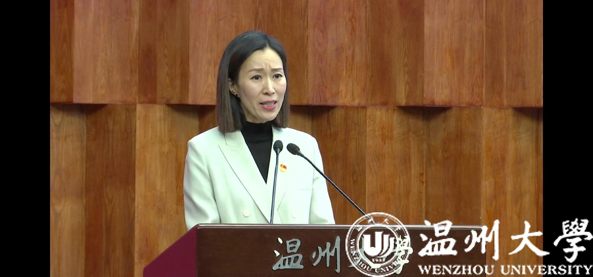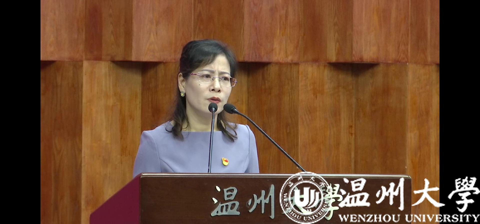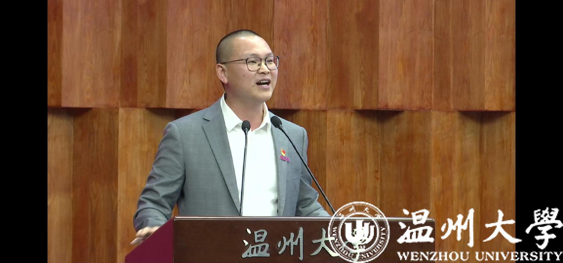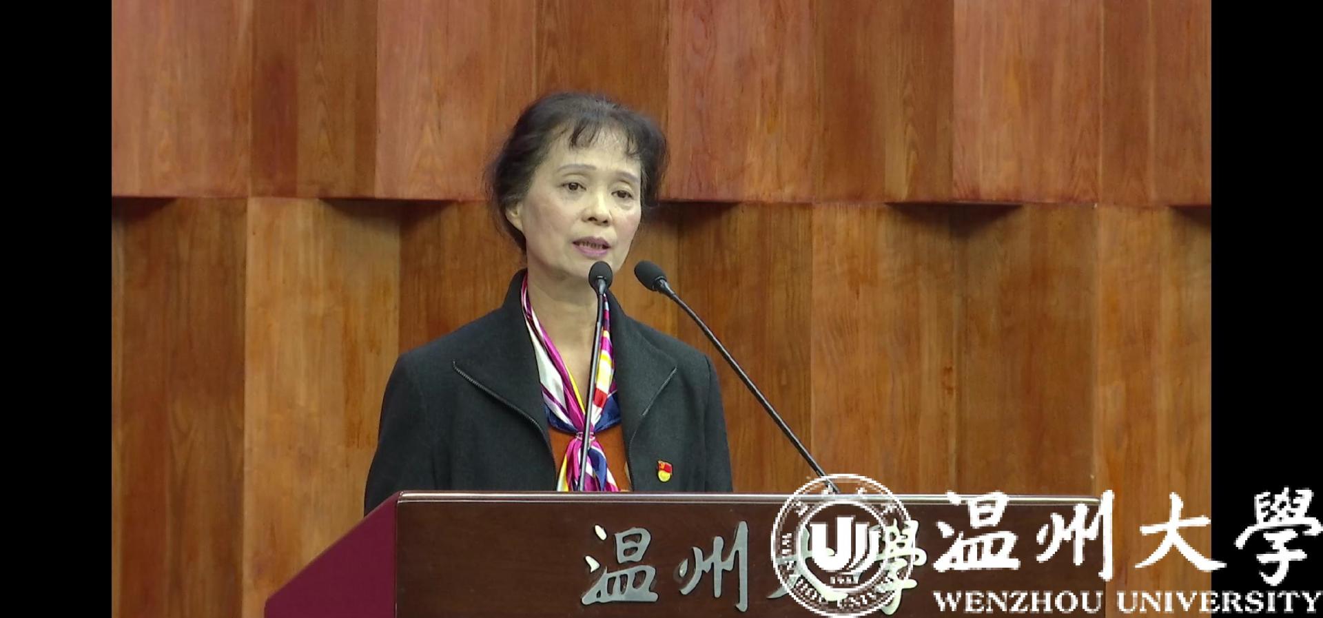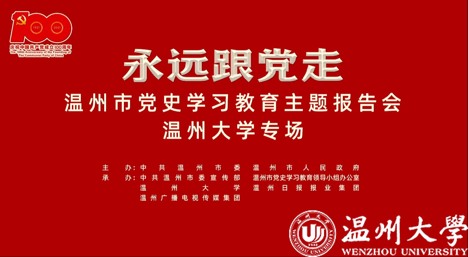 会议上半场由温州大学党委委员,宣传部部长潘玉驹老师主持,进行“永远跟党走”主题教育报告会。
